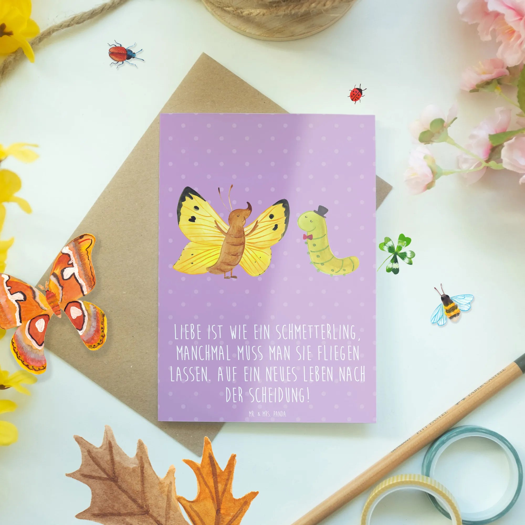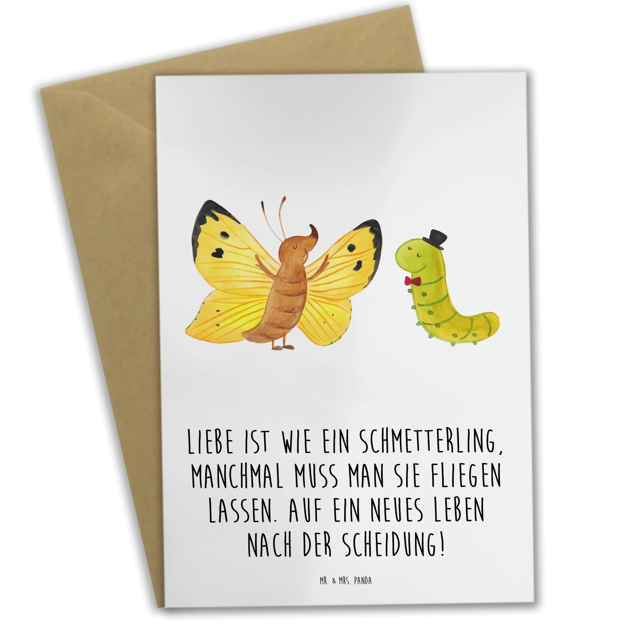 Entdecke die bezaubernde Grußkarte zur Scheidung aus der exklusiven Hochzeitskollektion von Mr. & Mrs. Panda. Diese liebevoll gestaltete Karte mit dem inspirierenden Spruch "Liebe ist wie ein Schmetterling, manchmal muss man sie fliegen lassen. Auf ein neues Leben nach der Scheidung!" ist das perfekte Accessoire für alle, die sich in einer schwierigen Lebensphase befinden.