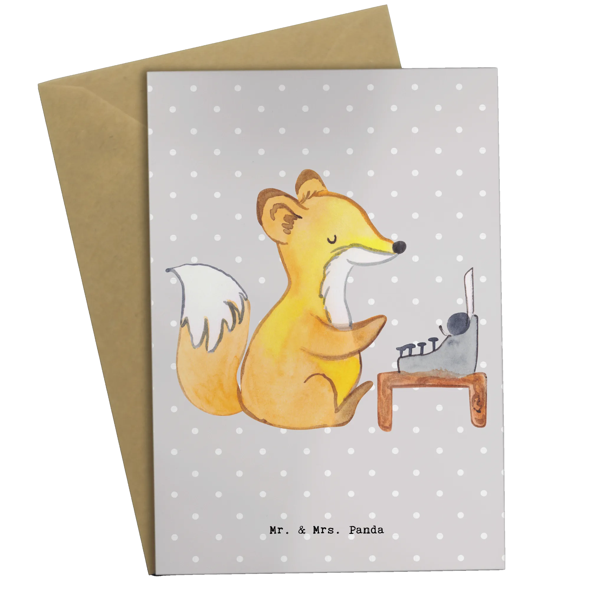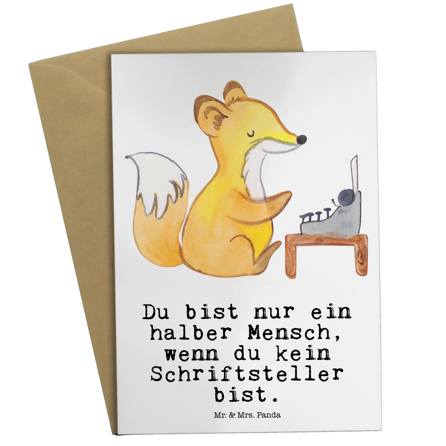 Bist du leidenschaftlicher Schriftsteller oder kennst du jemanden, der mit Herz und Seele in die Welt der Worte eintaucht? Dann ist die Grußkarte "Schriftsteller mit Herz" aus der Berufe-Kollektion von Mr. & Mrs. Panda genau das perfekte Geschenk für ihn oder sie. Diese wunderbare Grußkarte wird aus hochwertigem 300 Gramm Karton gefertigt und ist mit einem charmanten Motiv versehen: Ein süßer Fuchs sitzt an seiner Schreibmaschine und ist dabei, eine Geschichte zu schreiben.
