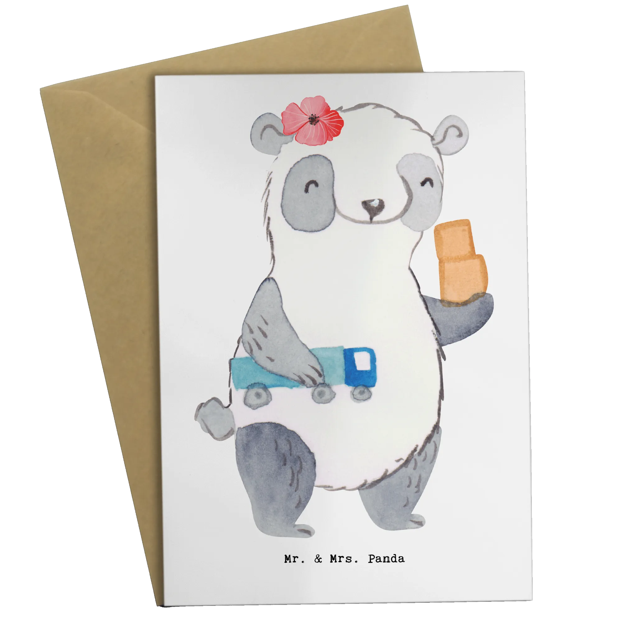 Die Karte ist mit einem liebevoll gestalteten Motiv bedruckt, das eine süße Panda-Figur zeigt, die einen kleinen Spielzeug-Lkw in der einen Hand und ein paar Mini-Kartons in der anderen Hand hält. Diese einzigartige Grußkarte ist nicht nur ein Ausdruck der Dankbarkeit, sondern auch eine schöne Geste für Kolleginnen und Kollegen, die ihren beruflichen Beitrag leisten.