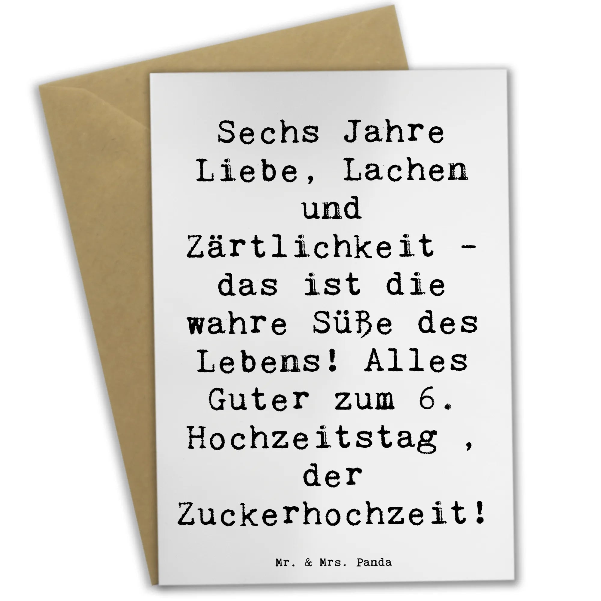 Entdecke die perfekte Grußkarte für den 6. Hochzeitstag, auch bekannt als Zuckerhochzeit! Diese liebevoll gestaltete Karte von Mr. & Mrs. Panda zaubert jedem Paar ein Lächeln ins Gesicht.