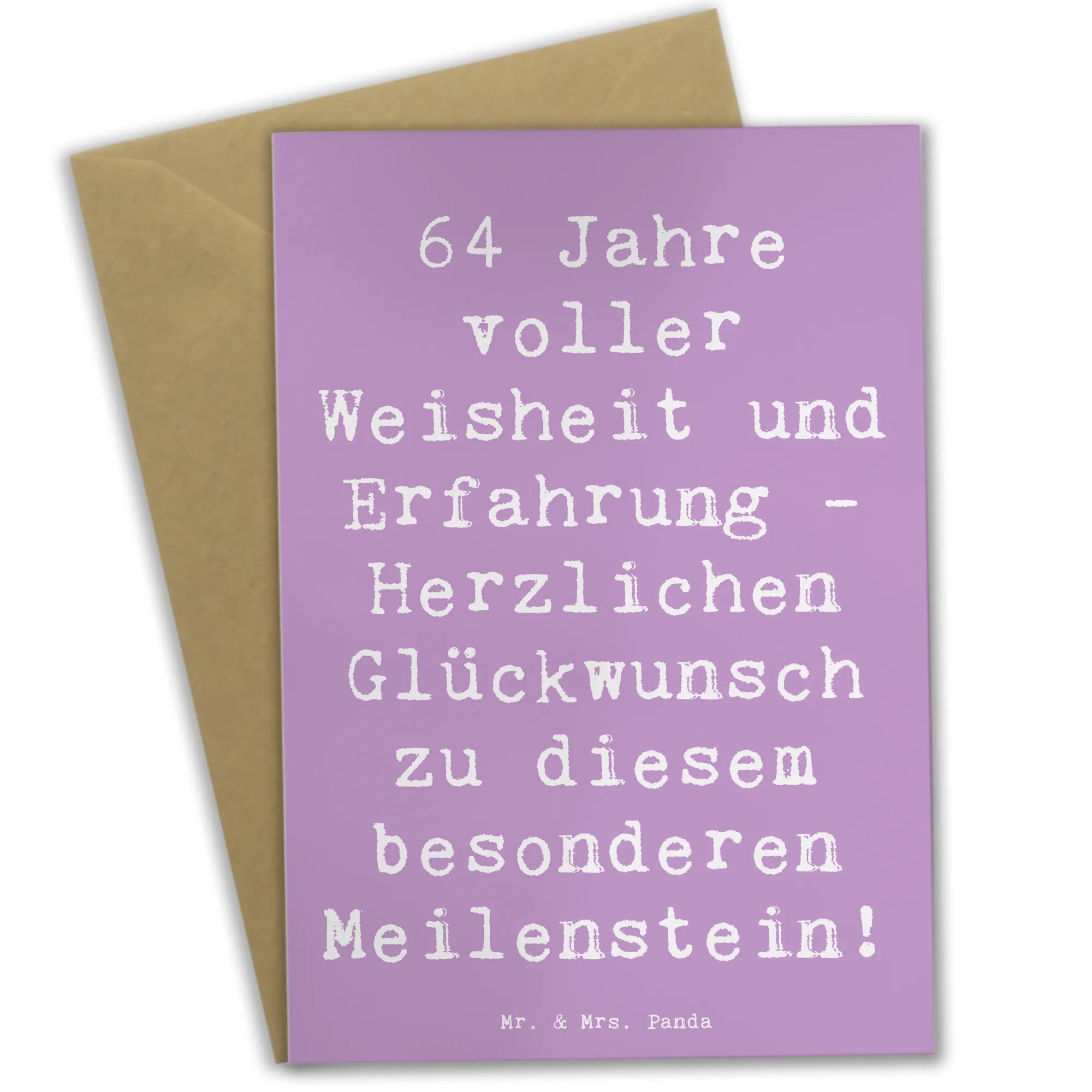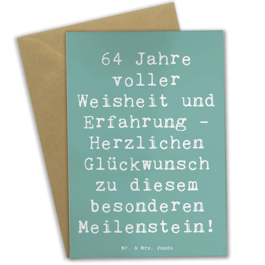 Die wunderschöne Grußkarte zum 64. Geburtstag von Mr. & Mrs. Panda ist die perfekte Wahl, um mit Stil und Freude zu gratulieren. Mit dem liebevollen Spruch "64 Jahre voller Weisheit und Erfahrung - Herzlichen Glückwunsch zu diesem besonderen Meilenstein!" ist diese Karte ein ganz besonderes Geschenk, das nicht nur Herzen höherschlagen lässt, sondern auch unvergessliche Augenblicke schafft. Egal, ob Du sie für einen lieben Freund, ein Familienmitglied oder einen Kollegen auswählst, sie ist ideal, um Glückwünsche zu übermitteln und das Alter zu feiern.