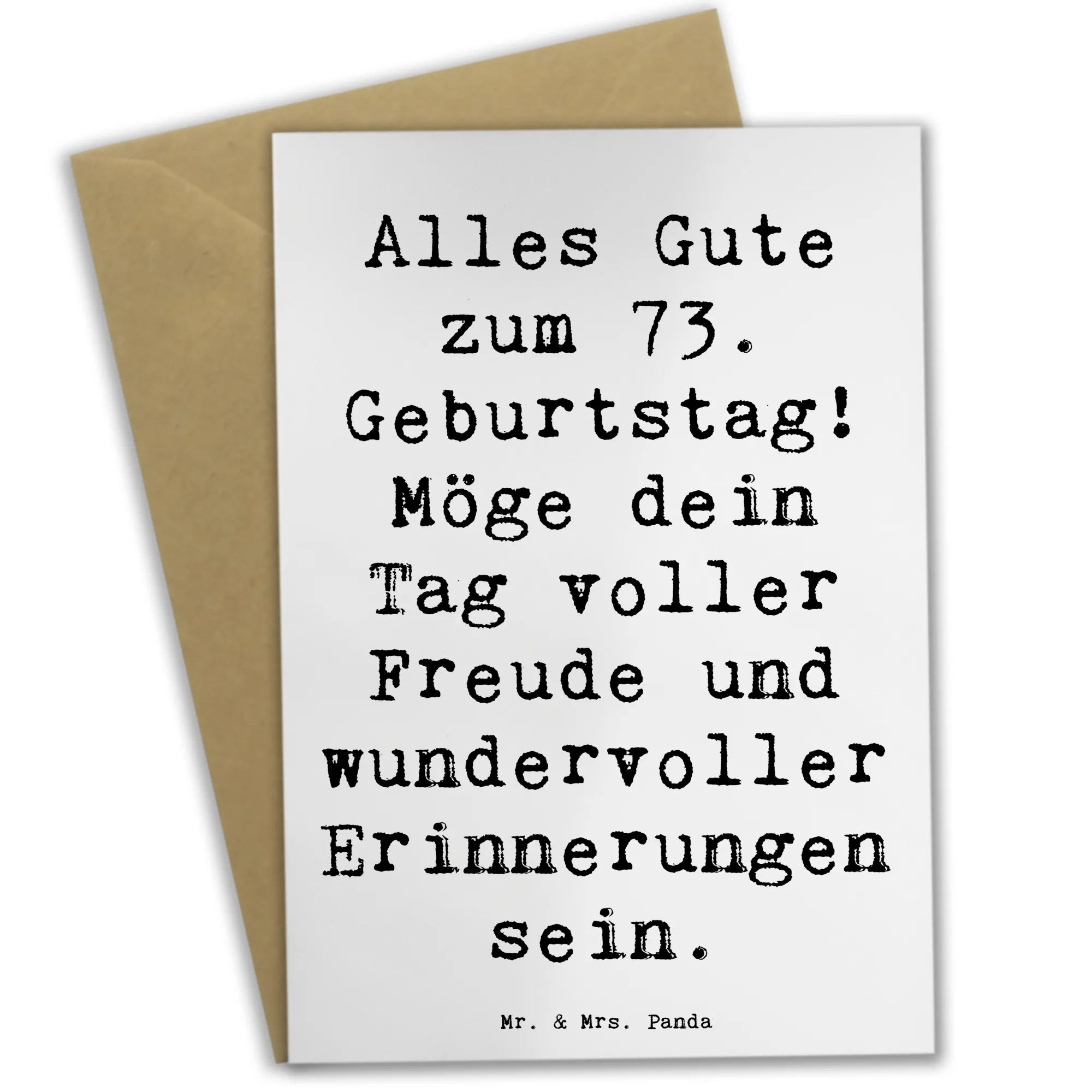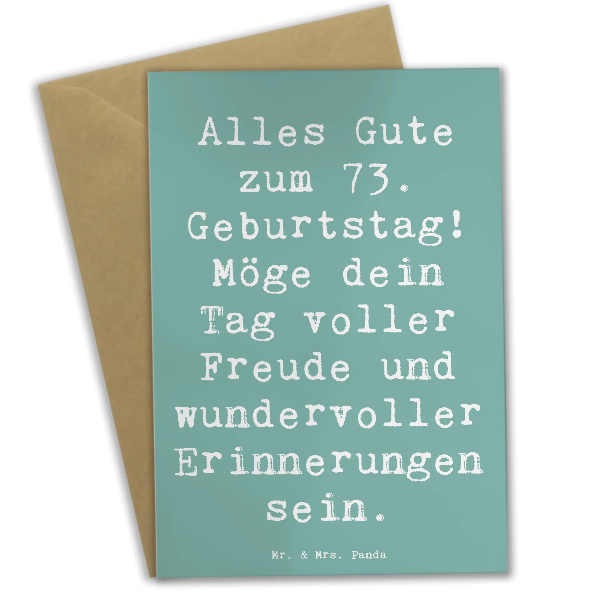 Finde mit dieser Grußkarte genau das richtige Geschenk, um den 73. Geburtstag stilvoll zu feiern. Lass deiner Kreativität freien Lauf und schreibe all die schönen Erinnerungen und Glückwünsche auf, die du mit dem Geburtstagskind teilst. Wenn du auf der Suche nach einer besonderen Geburtstagskarte bist, die sowohl niedlich als auch bedeutungsvoll ist, dann ist diese Karte genau das Richtige für dich. Mach diesen Geburtstag unvergesslich mit Mr. & Mrs. Panda!