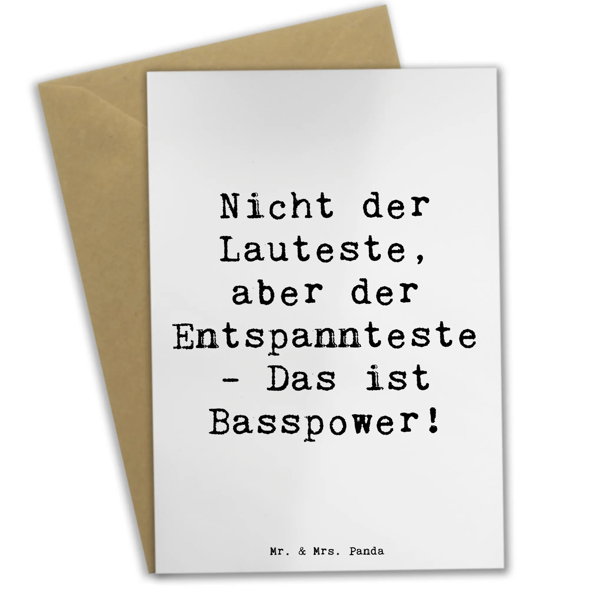 Die Grußkarte mit dem witzigen Motto "Nicht der Lauteste, aber der Entspannteste - Das ist Basspower!" von Mr. & Mrs. Panda ist das perfekte Geschenk für alle Musikliebhaber! Egal ob zum Geburtstag, zur Hochzeit oder einfach nur so – diese Karte wird das Herz jedes Musikers höherschlagen lassen.
