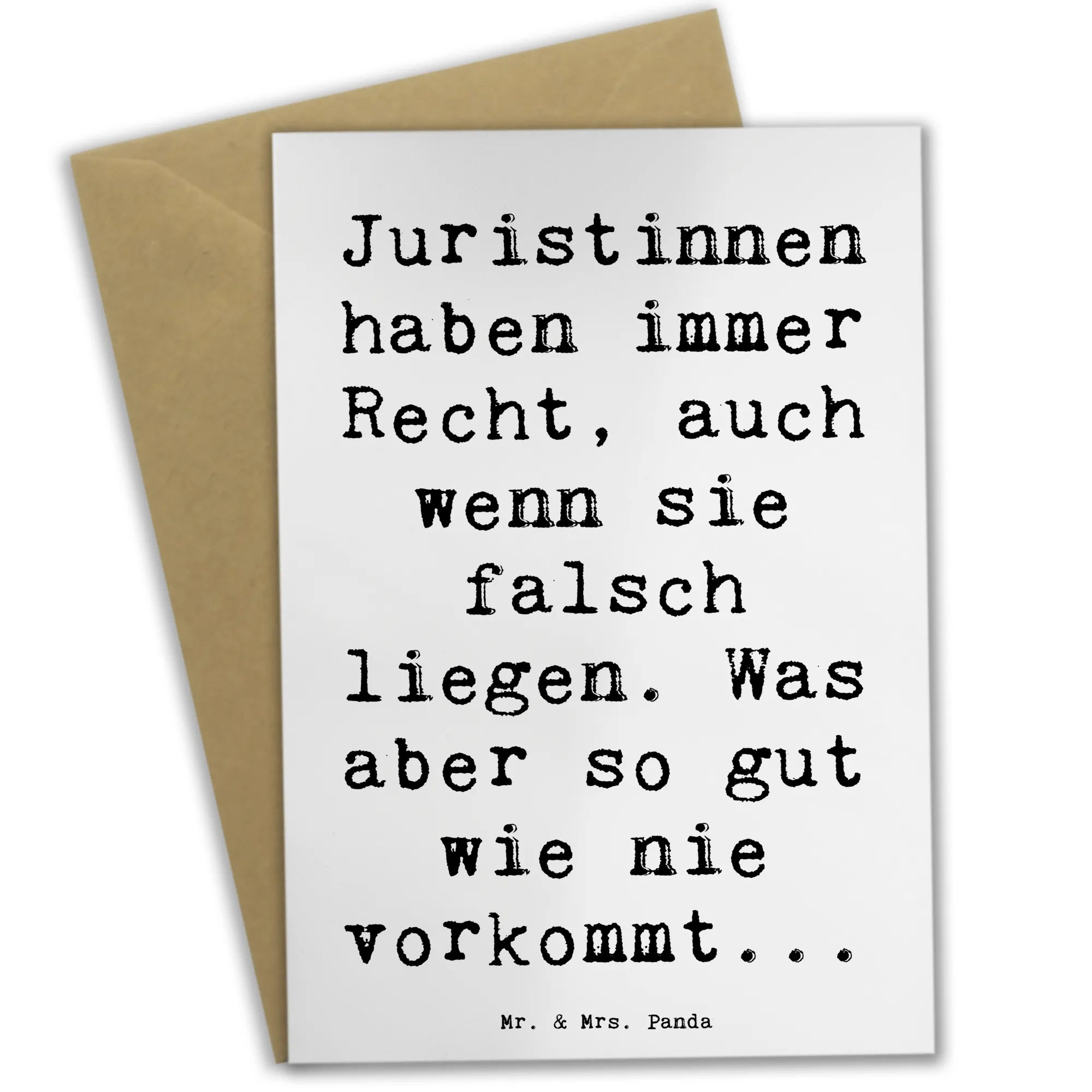 Die perfekte Grußkarte für alle Juristinnen! Diese einzigartige Grußkarte von Mr. & Mrs. Panda ist mehr als nur ein Stück Papier – sie ist eine herzliche Umarmung in Form einer Karte. Mit dem spritzigen Slogan "Juristinnen haben immer Recht, auch wenn sie falsch liegen. Was aber so gut wie nie vorkommt..." zaubert sie jedem Juristinnen ein Lächeln ins Gesicht.