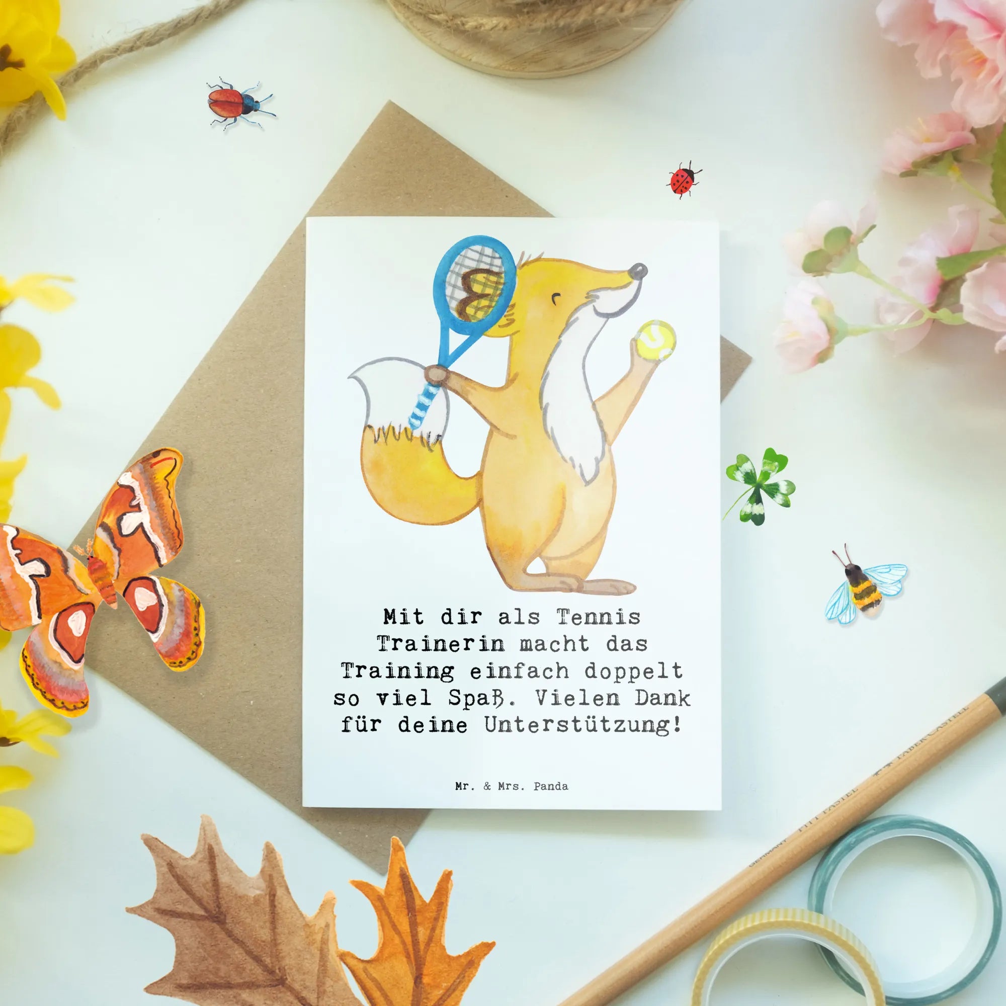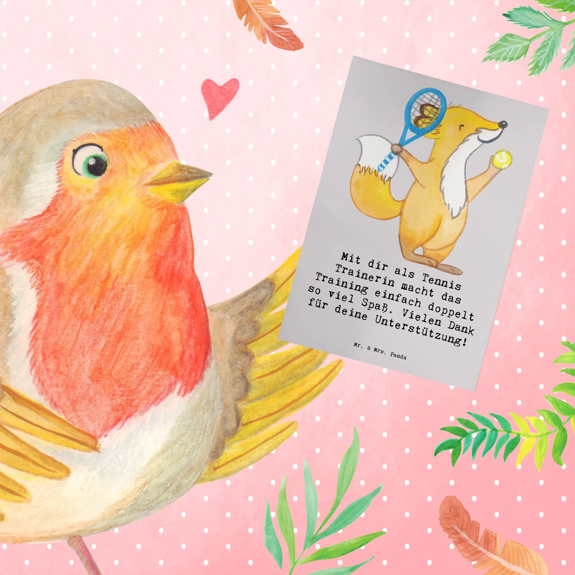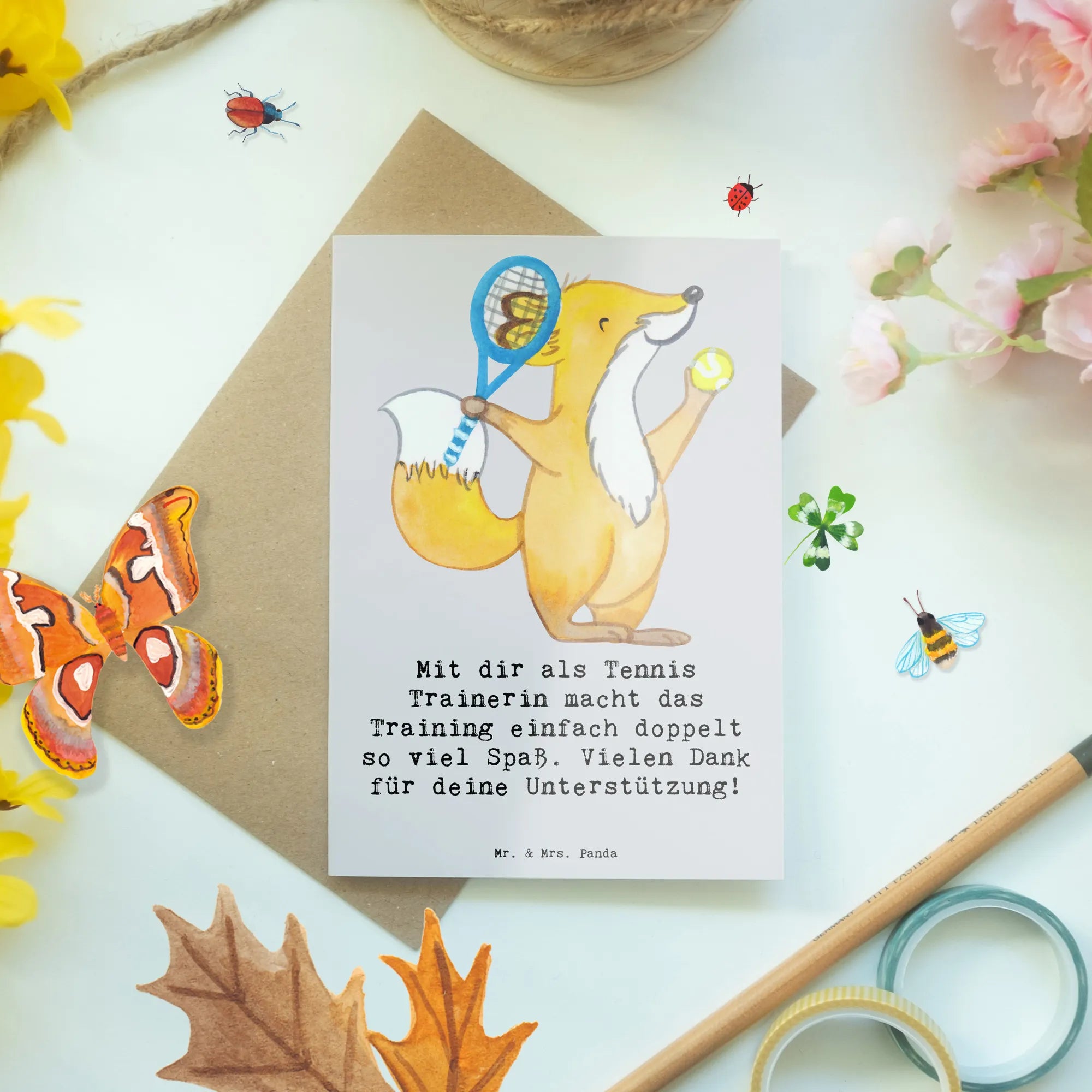 Zeige deiner Trainerin, wie sehr du ihre Unterstützung schätzt, und mache ihr eine Freude mit dieser wundervollen Grußkarte von Mr. & Mrs. Panda! 🎾