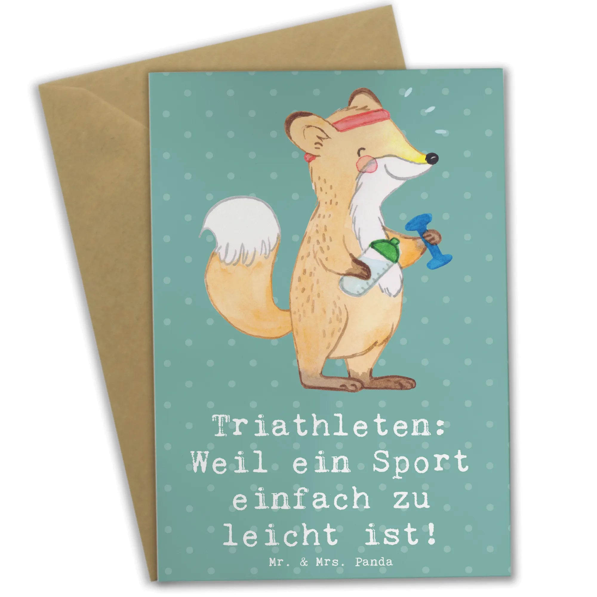 Du suchst nach einer perfekten Grußkarte für den Triathlon-Fan in deinem Leben? Dann ist die wunderschöne Grußkarte von Mr. & Mrs. Panda mit dem motivierenden Spruch "Triathleten: Weil ein Sport einfach zu leicht ist!" genau das Richtige!
