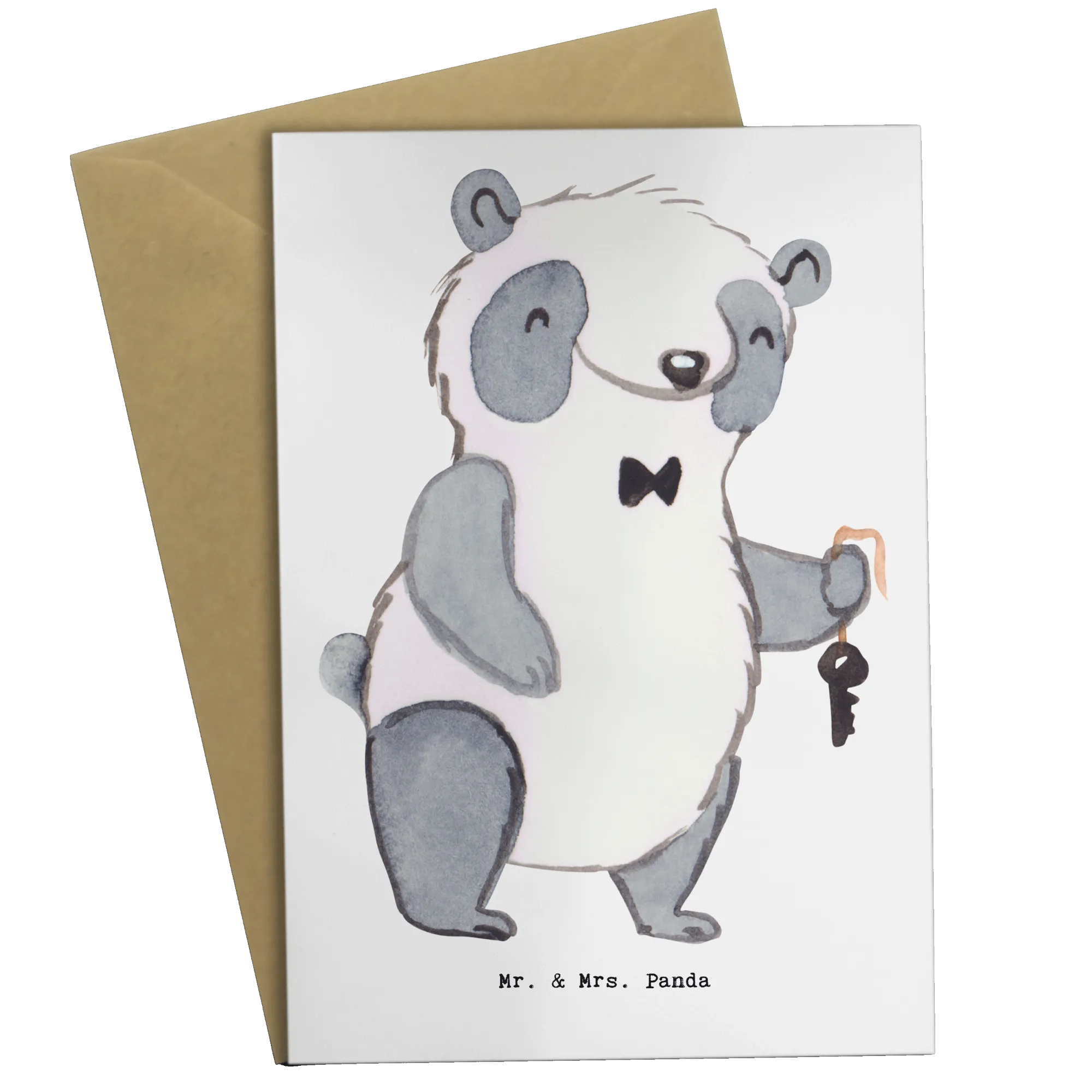Die Grußkarte "Vermieter mit Herz" von Mr. & Mrs. Panda ist das perfekte Geschenk für alle, die die Liebe zu ihrem Beruf feiern möchten! Mit einem süßen Panda, der einen Schlüssel in der Hand hält, und dem Spruch "Du bist nur ein halber Mensch, wenn du kein Vermieter bist", zaubert diese Karte ein Lächeln auf jedes Gesicht.