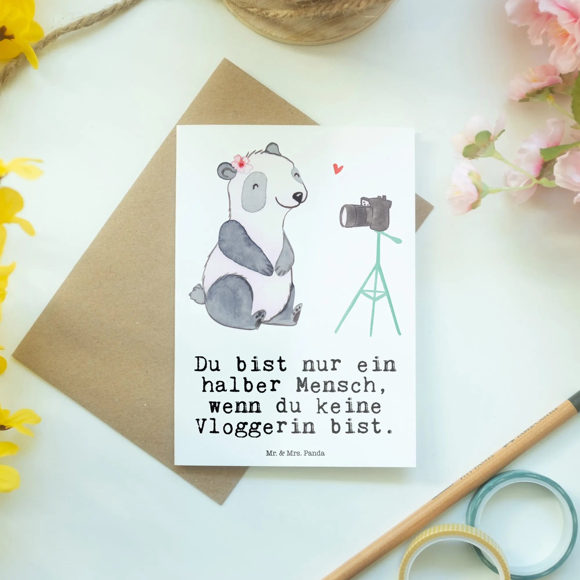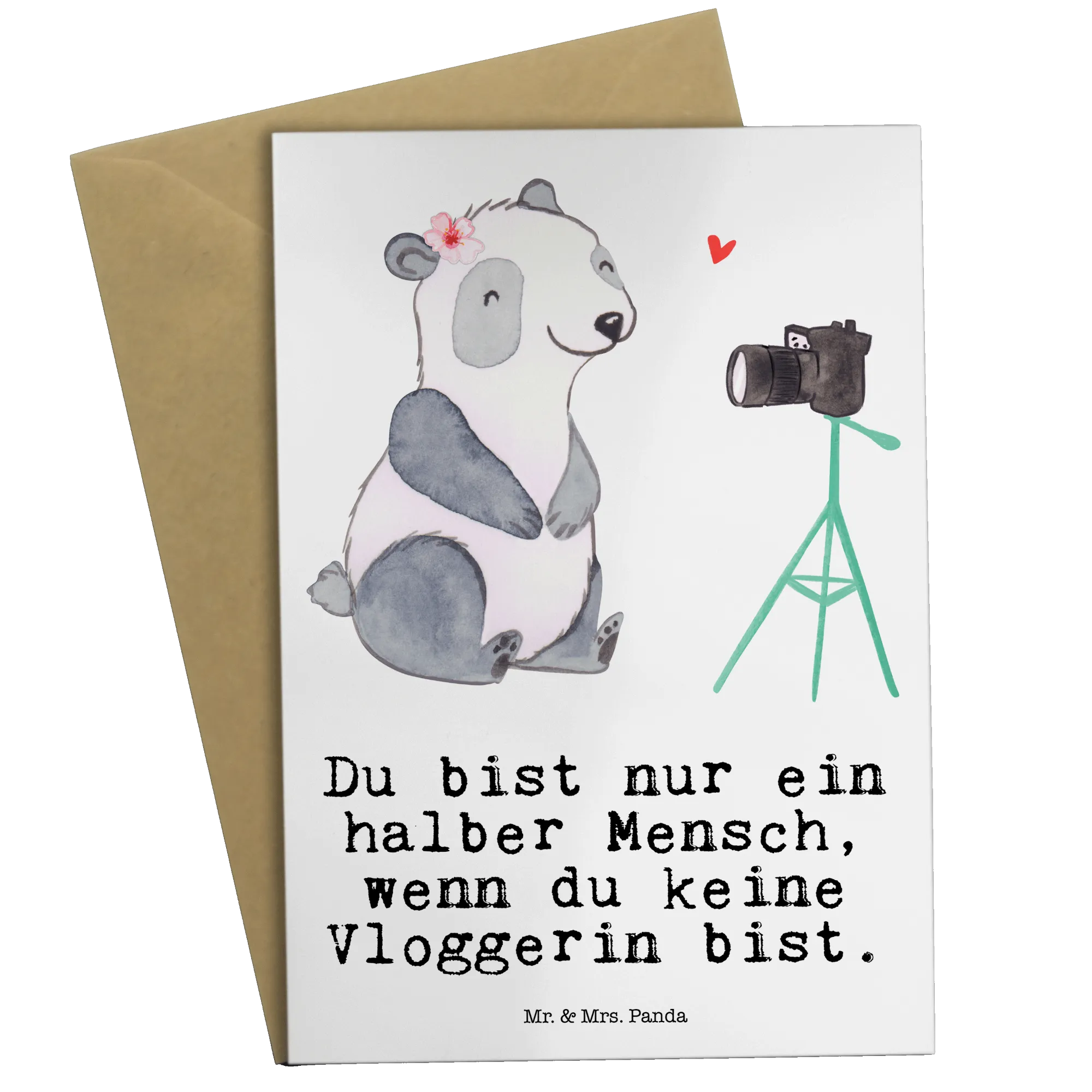Entdecke die zauberhafte Grußkarte "Vloggerin mit Herz" aus der exklusiven Berufe Kollektion von Mr. & Mrs. Panda. Diese einzigartige Karte ist nicht nur ein wunderschönes Geschenk für alle leidenschaftlichen Vlogger, sondern auch eine kreative Möglichkeit, Deine Wertschätzung auszudrücken.