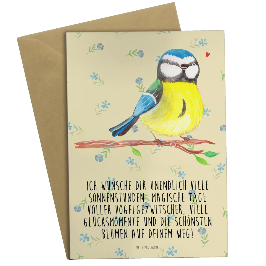 Grußkarte Vogel Blaumeise - Blumig