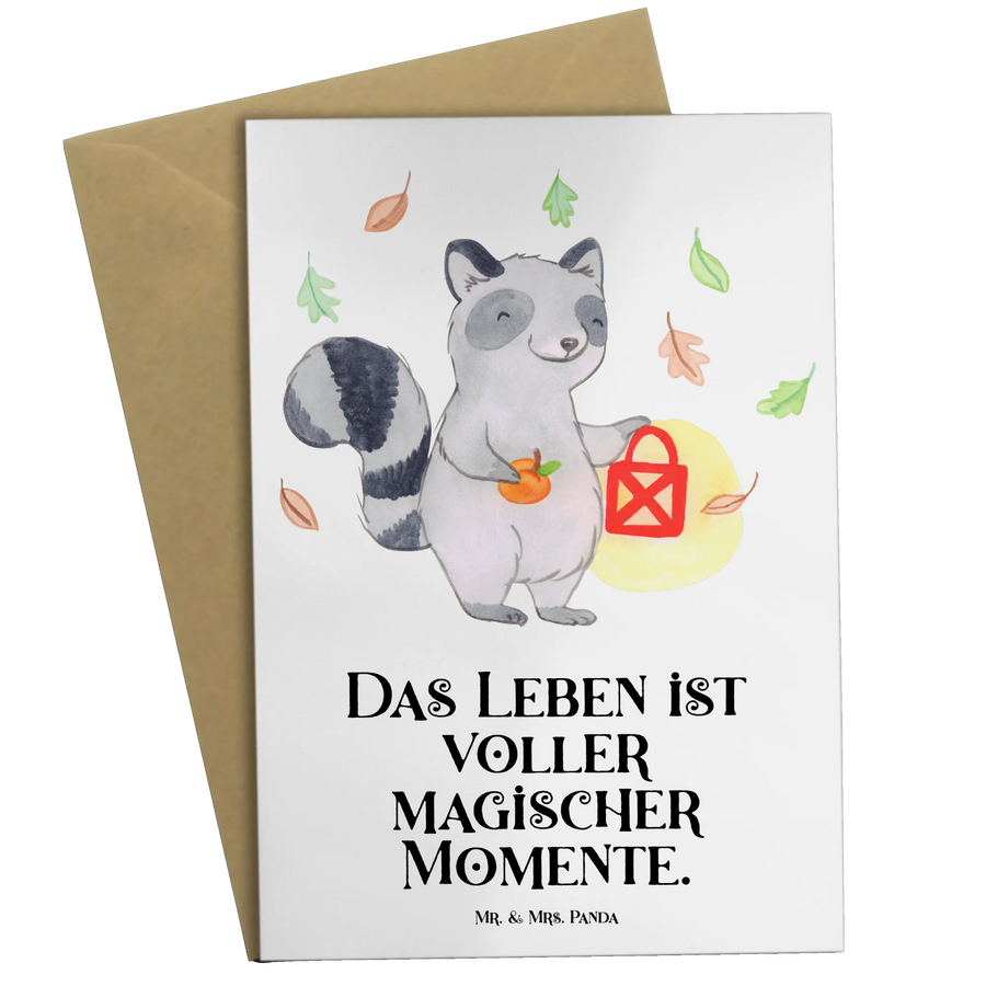 Die wunderschöne Grußkarte mit dem zauberhaften Waschbär Laterne Motiv aus der Halloween Kollektion von Mr. & Mrs. Panda ist das perfekte Geschenk für alle, die die herbstliche Jahreszeit genauso lieben wie wir! Der niedliche Waschbär, der eine leuchtende Laterne hält, strahlt eine besondere Gemütlichkeit aus und erinnert uns daran, dass jeder Moment magisch sein kann.