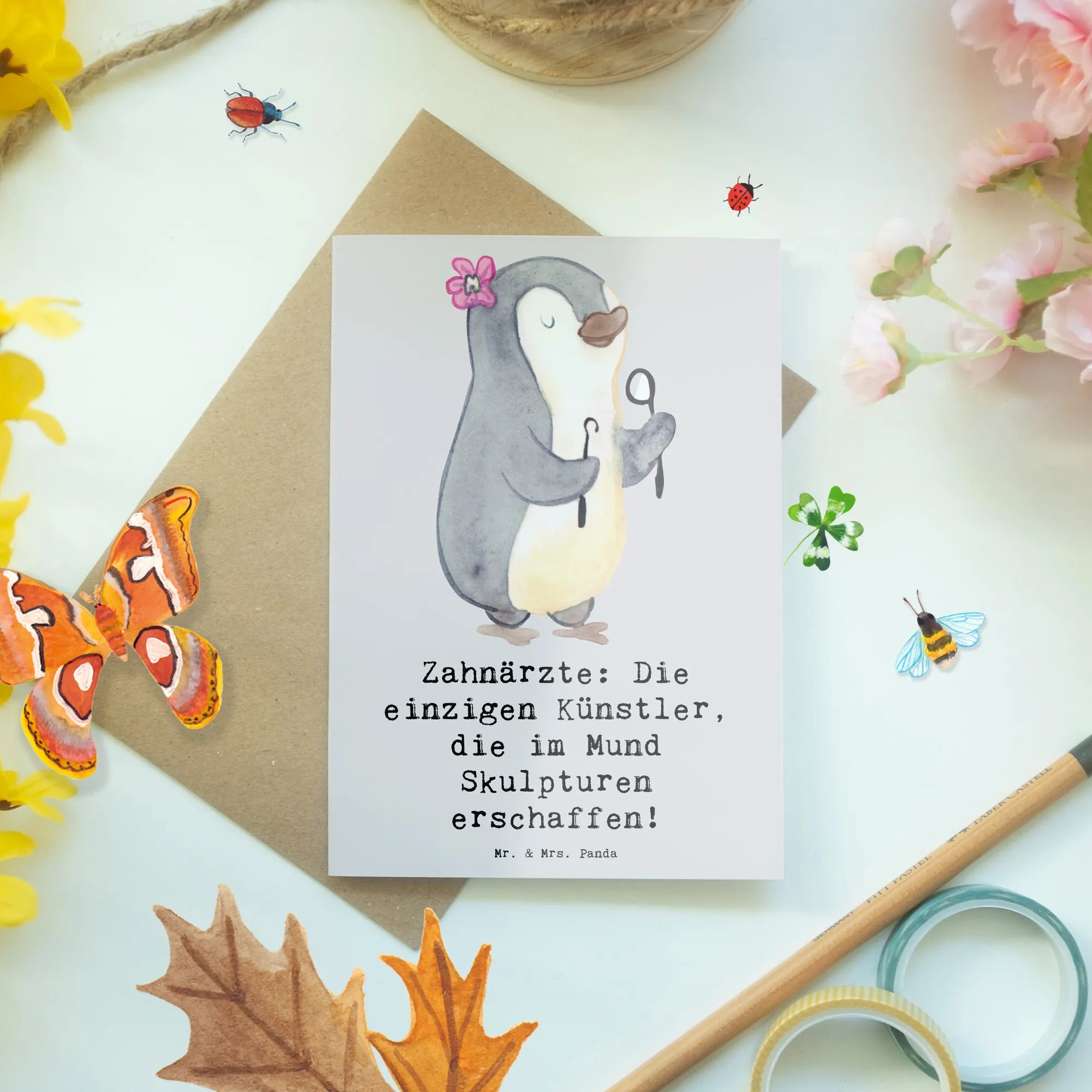 Du suchst die perfekte Grußkarte für einen Zahnarzt? Unsere Grußkarte „Zahnarzt" aus der Berufe-Kollektion von Mr. & Mrs. Panda verbindet liebevolle Aquarell-Illustration mit einem augenzwinkernden Spruch: „Zahnärzte: Die einzigen Künstler, die im Mund Skulpturen erschaffen!" 🦷💌
