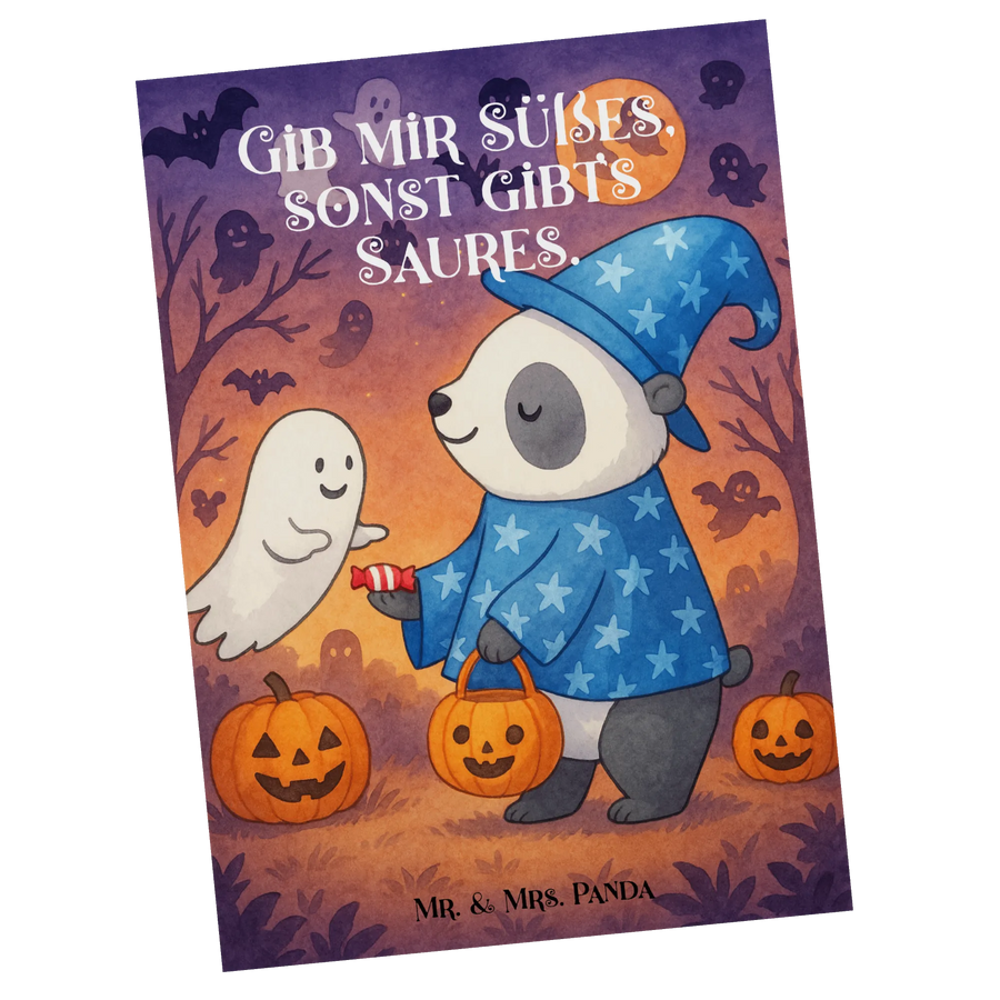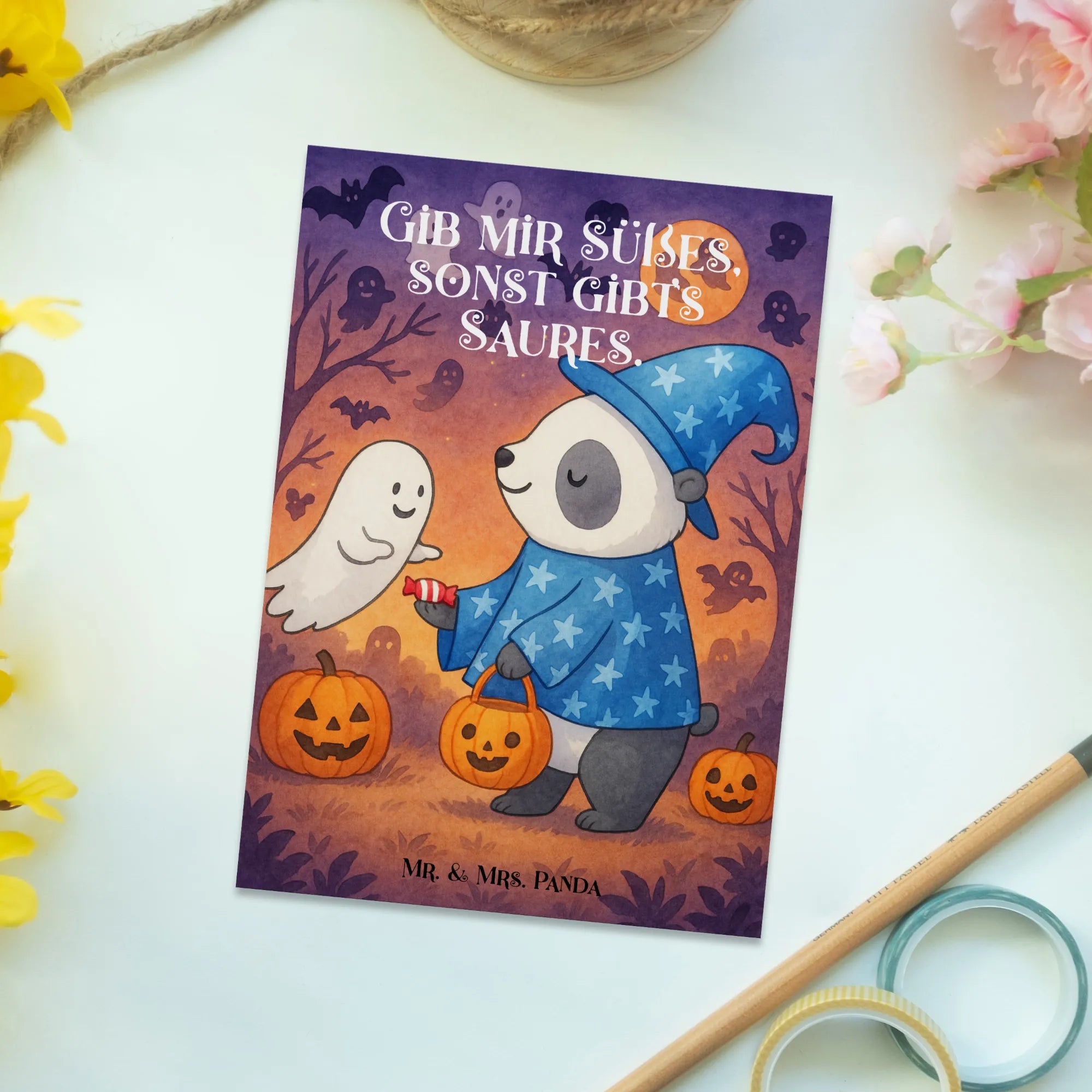 Postkarte Panda Zauberer Design Karte, Einladungskarte, Einladung, Grußkarte, Postkarte, Ansichtskarte, Ansichtskarten, Einladung Geburtstag, Geburtstagskarte, Einladungskarten Geburtstag, Dankeskarte, Geschenkkarte, Halloween, Deko, Martinssingen, Dekoration, Geschenke, Schenken, Gespenst, Süßes sonst gibt's saures, Trick or Treat, Zauberer, Panda, Halloween Deko