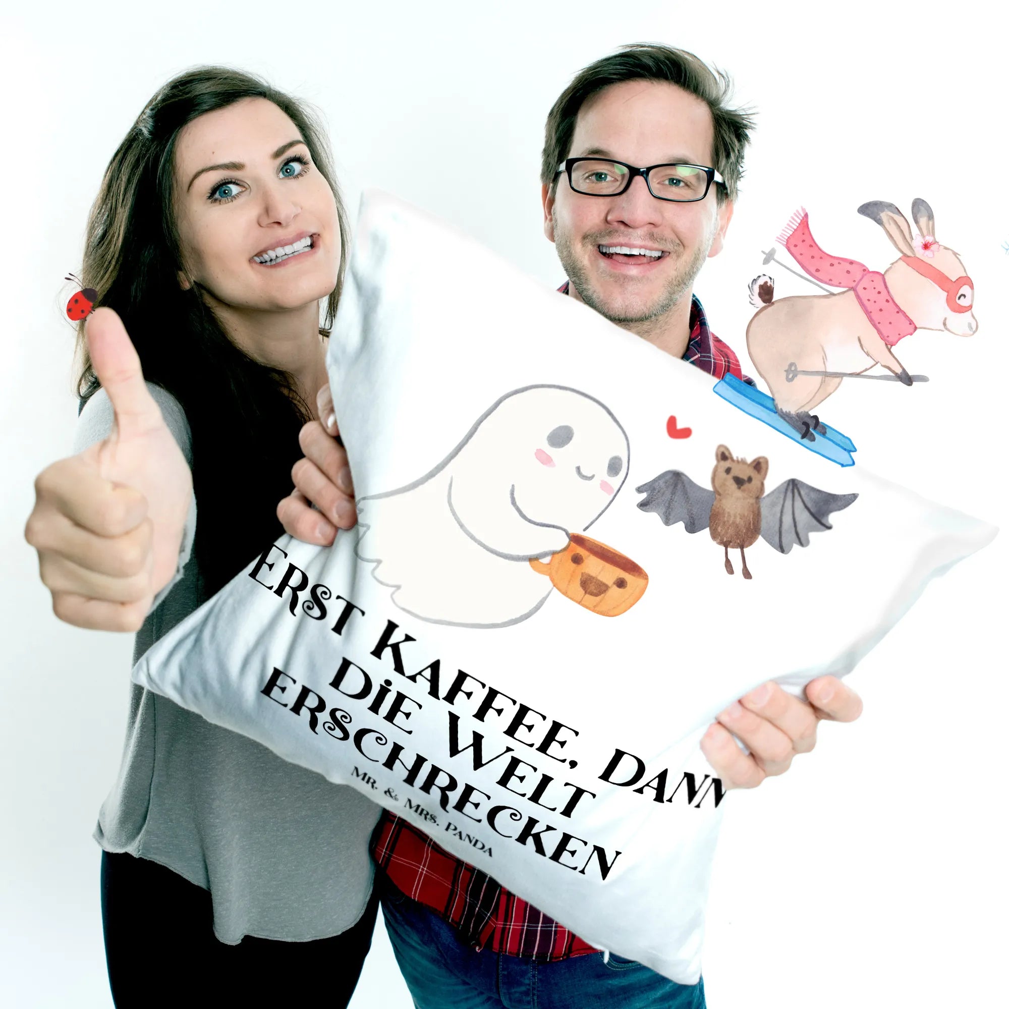 Das 40x40 Kissen "Gespenst Kaffee" von Mr. & Mrs. Panda ist das perfekte Geschenk für Halloween-Liebhaber und Kaffeegenießer! Mit seinem einzigartigen Design und dem liebevollen Slogan "Erst Kaffee, dann die Welt erschrecken" bringt dieses Kissen nicht nur Freude, sondern auch eine Prise gruselige Stimmung in dein Zuhause.