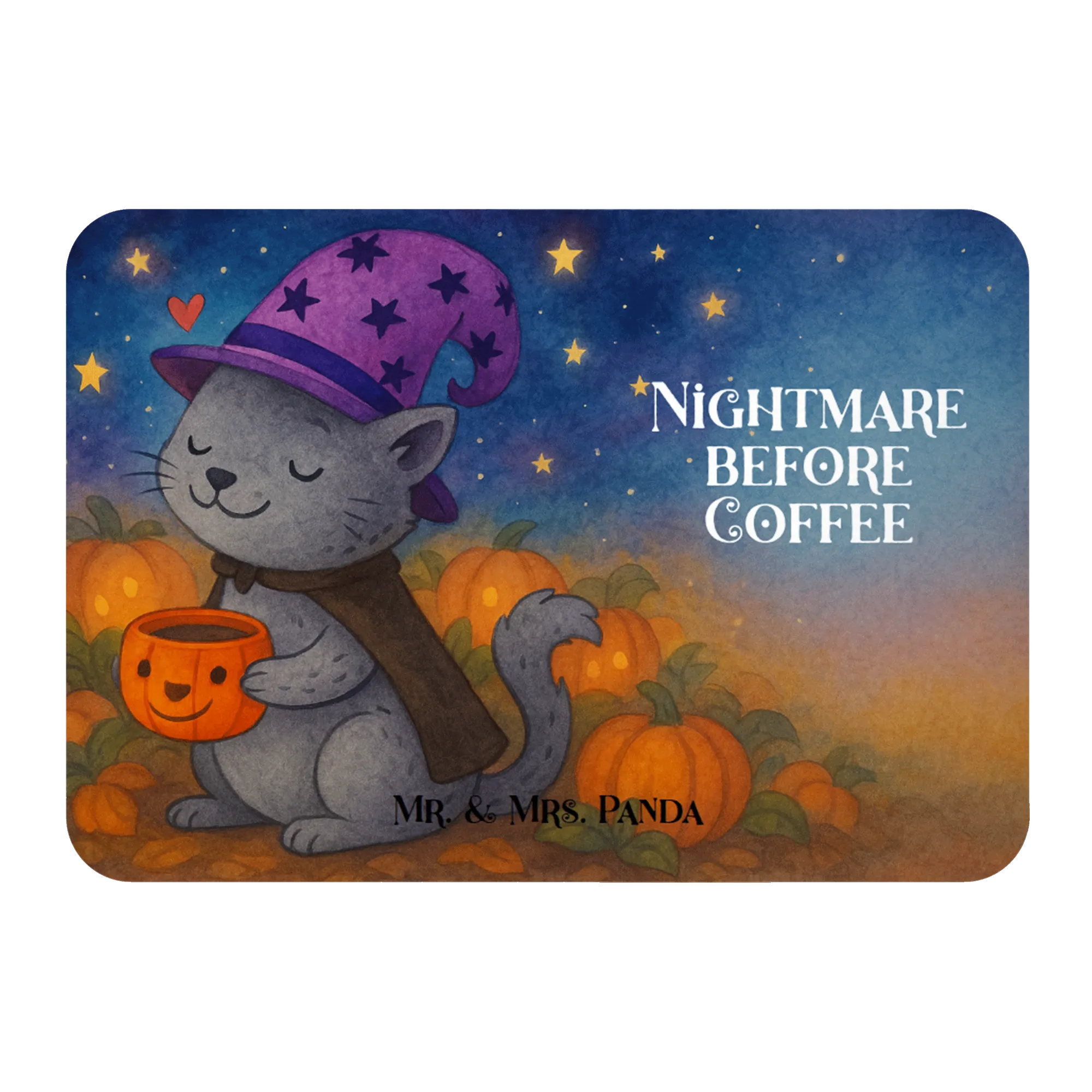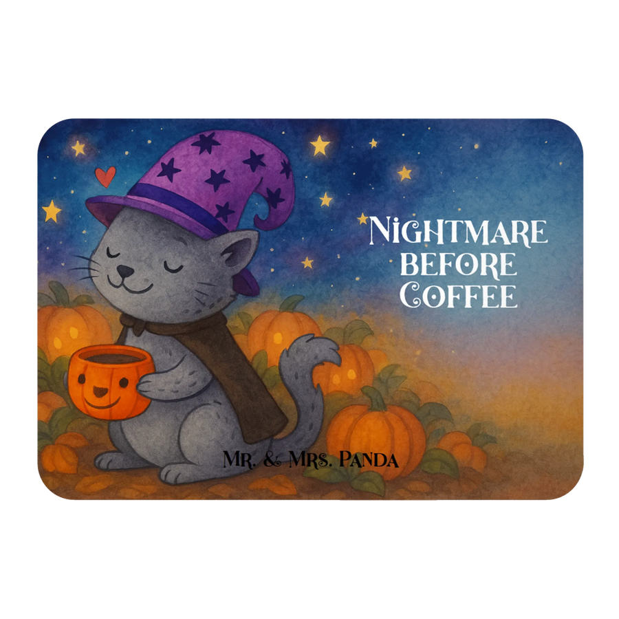 Stell dir vor, du bist umgeben von einer zauberhaften Welt und findest einen Kater, der einfach perfekt dazu passt. Mit seinem lilafarbenen Hut und seiner chicen Kürbistasse strahlt er pure Gelassenheit aus. Der Spruch "Nightmare before Coffee" spricht Bände über den Zauber, den eine Tasse Kaffee am Morgen entfalten kann. Dieser Hexenkater, der leicht den Eindruck eines Magiers vermittelt, hebt die Stimmung und bringt Freude in den Alltag. Es ist, als würde er uns all die kleinen und großen Herausforderungen des Lebens mit einem fröhlichen Schnurren übermitteln. Werde ein Teil dieser magischen Welt und erlebe die Bedeutung von Liebe und Freude durch die Augen eines besonderen Katers, der bei jedem Schluck für einen magischen Moment sorgt.