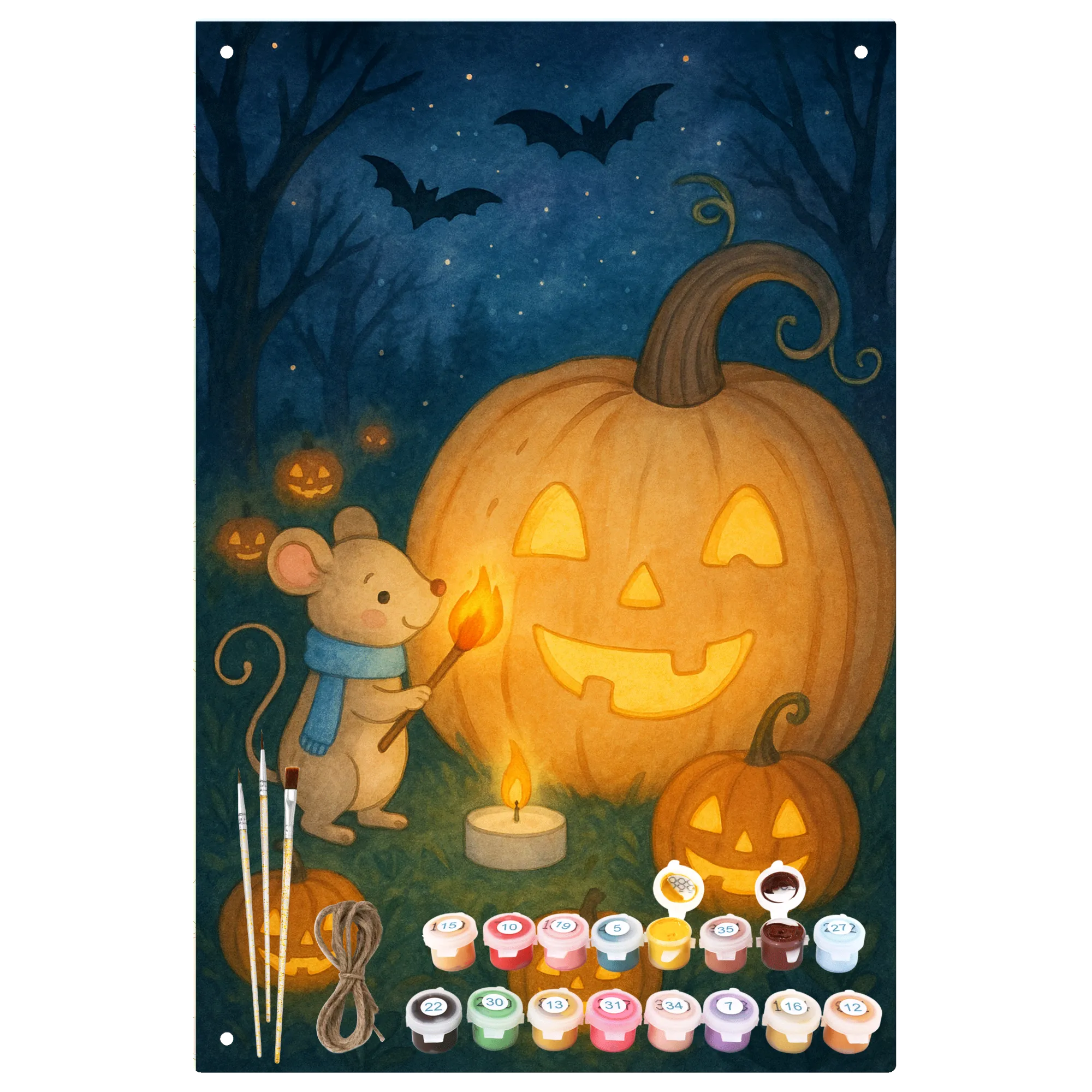 Malen nach Zahlen Metallschild Kürbis Maus Design