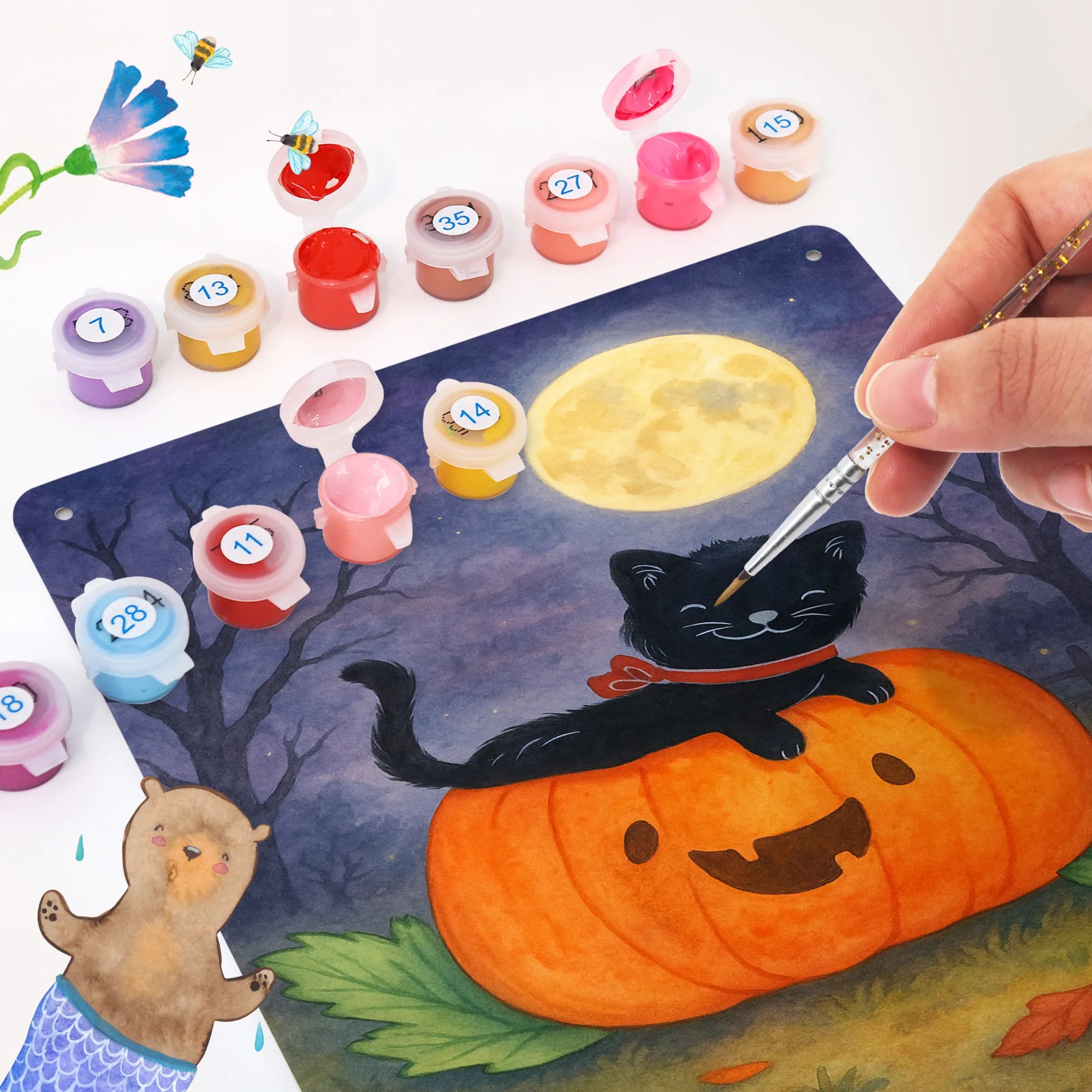 Malen nach Zahlen Metallschild Schwarze Katze Design