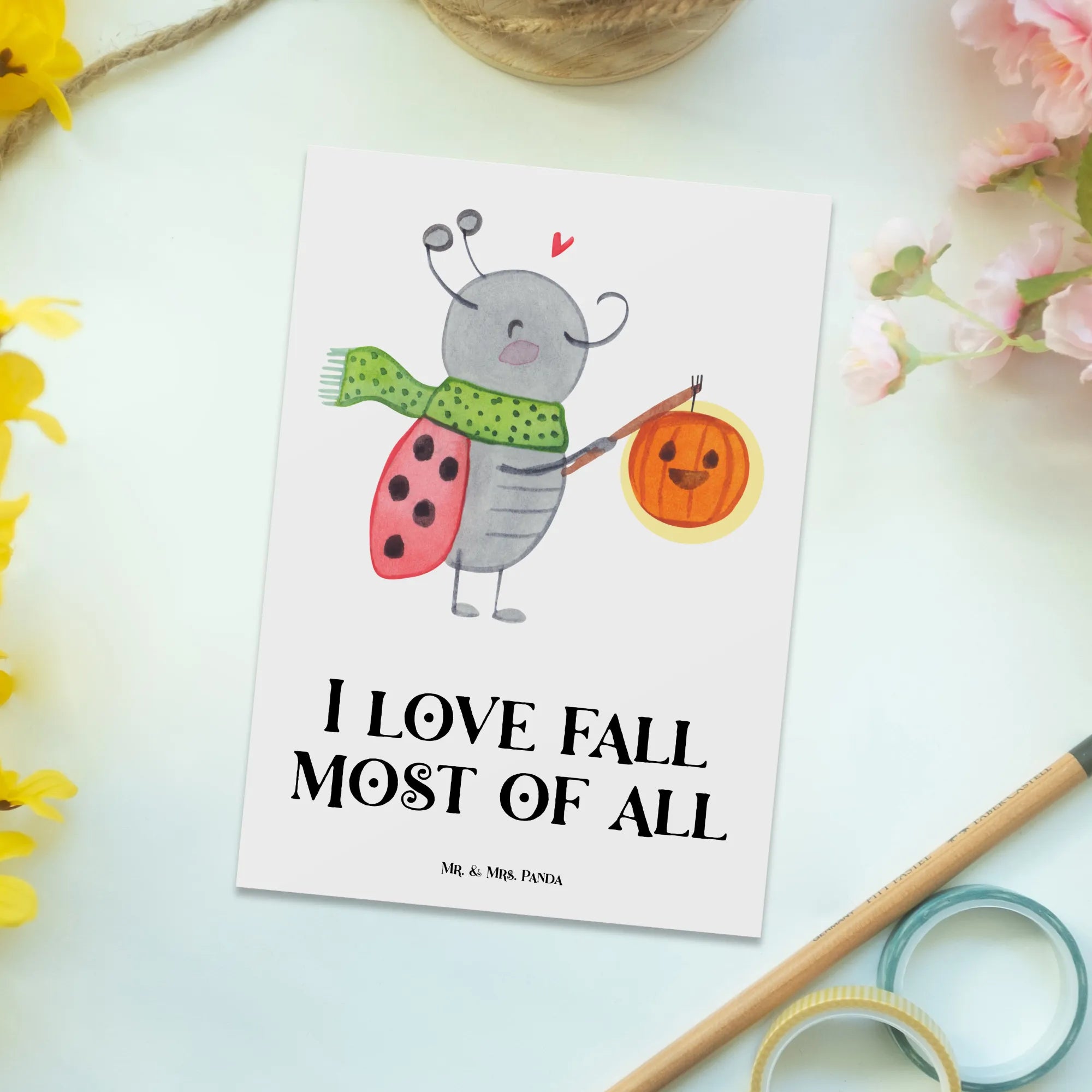 Diese einzigartige Karte ist das perfekte Geschenk für alle, die den Herbst lieben. Der liebevoll handgemalte Marienkäfer, der stolz seine leuchtende Kürbislaterne präsentiert, zaubert jedem ein Lächeln ins Gesicht. Seine grünen Punkte auf dem Schal und die fröhliche Laterne kreieren die unverwechselbare Atmosphäre einer klaren Herbstnacht!