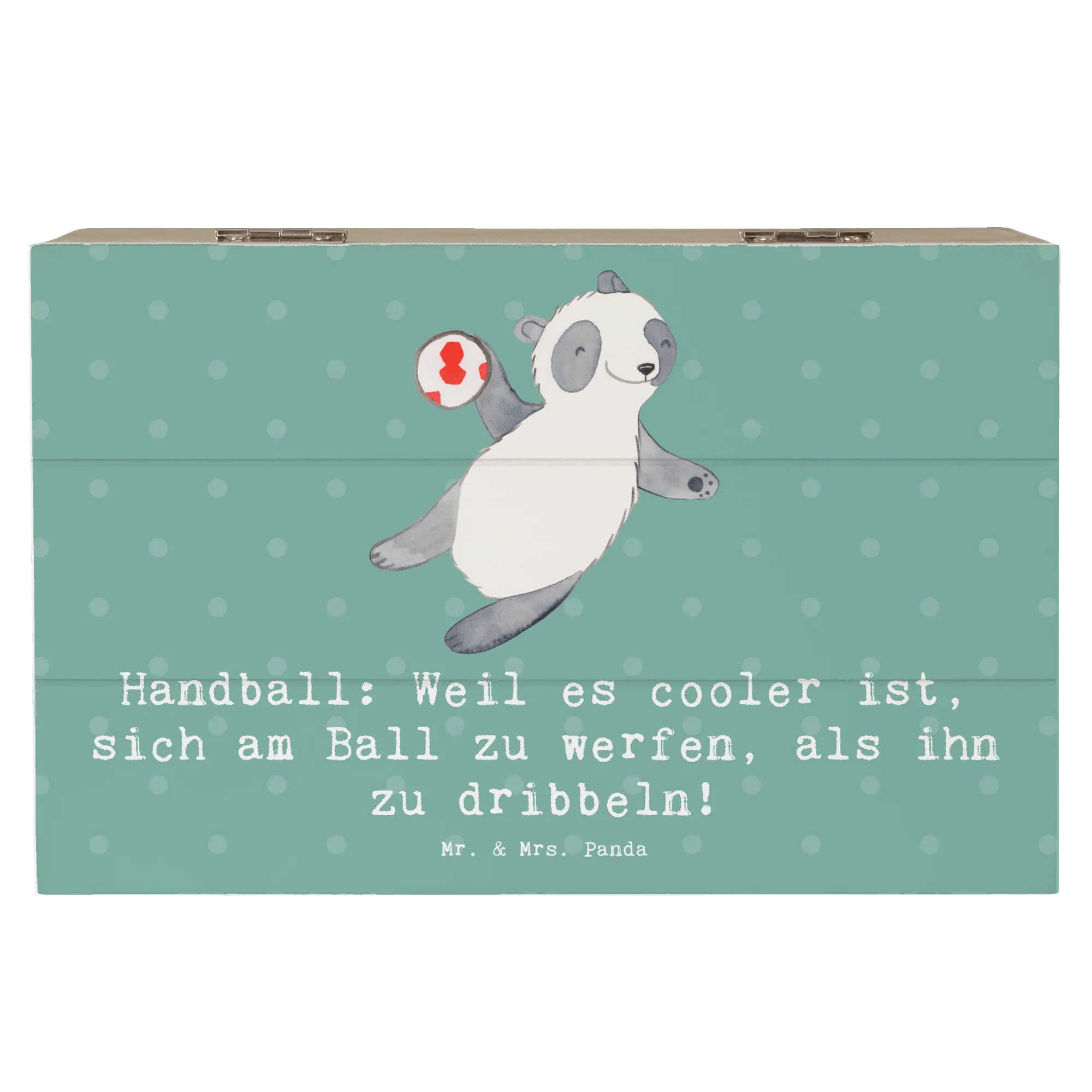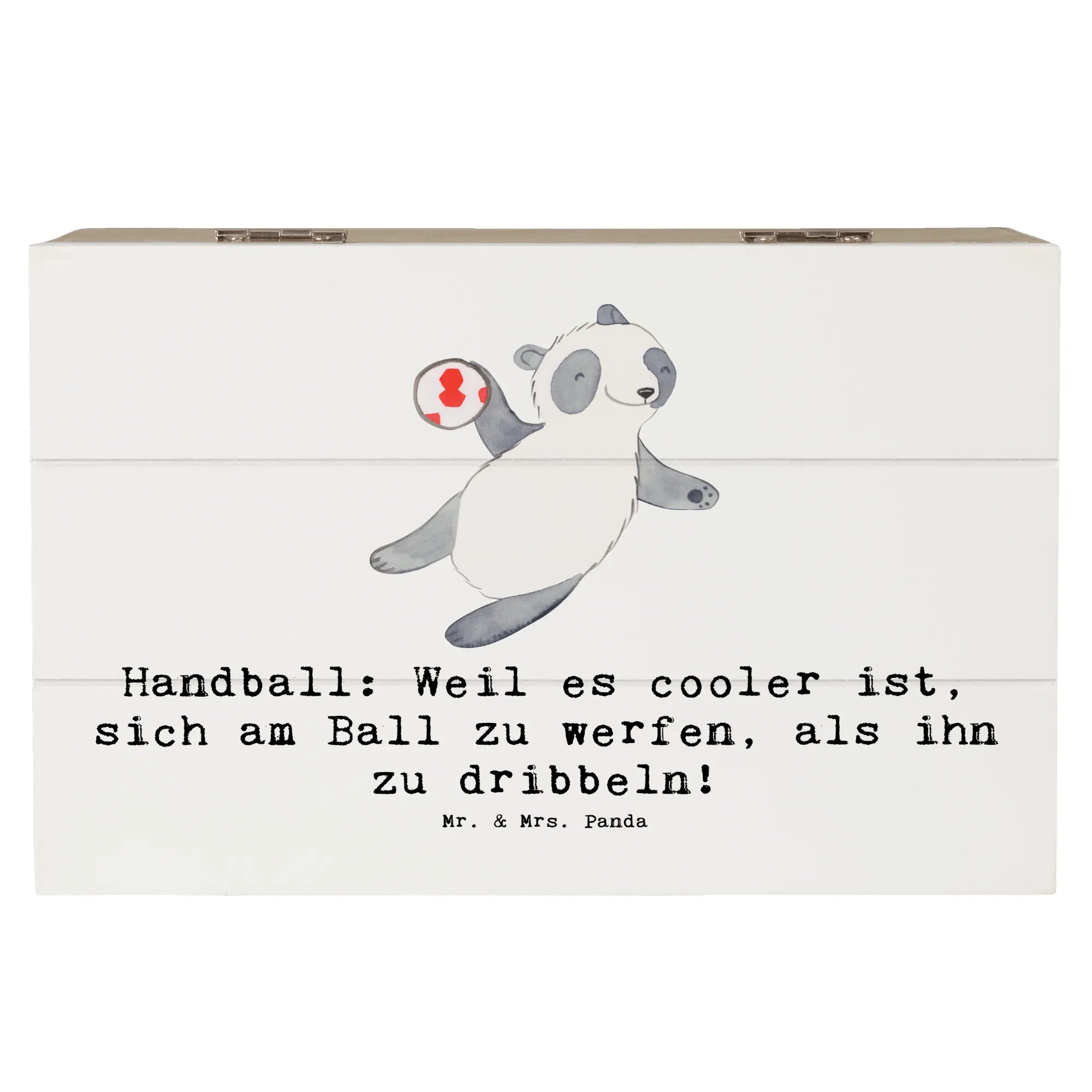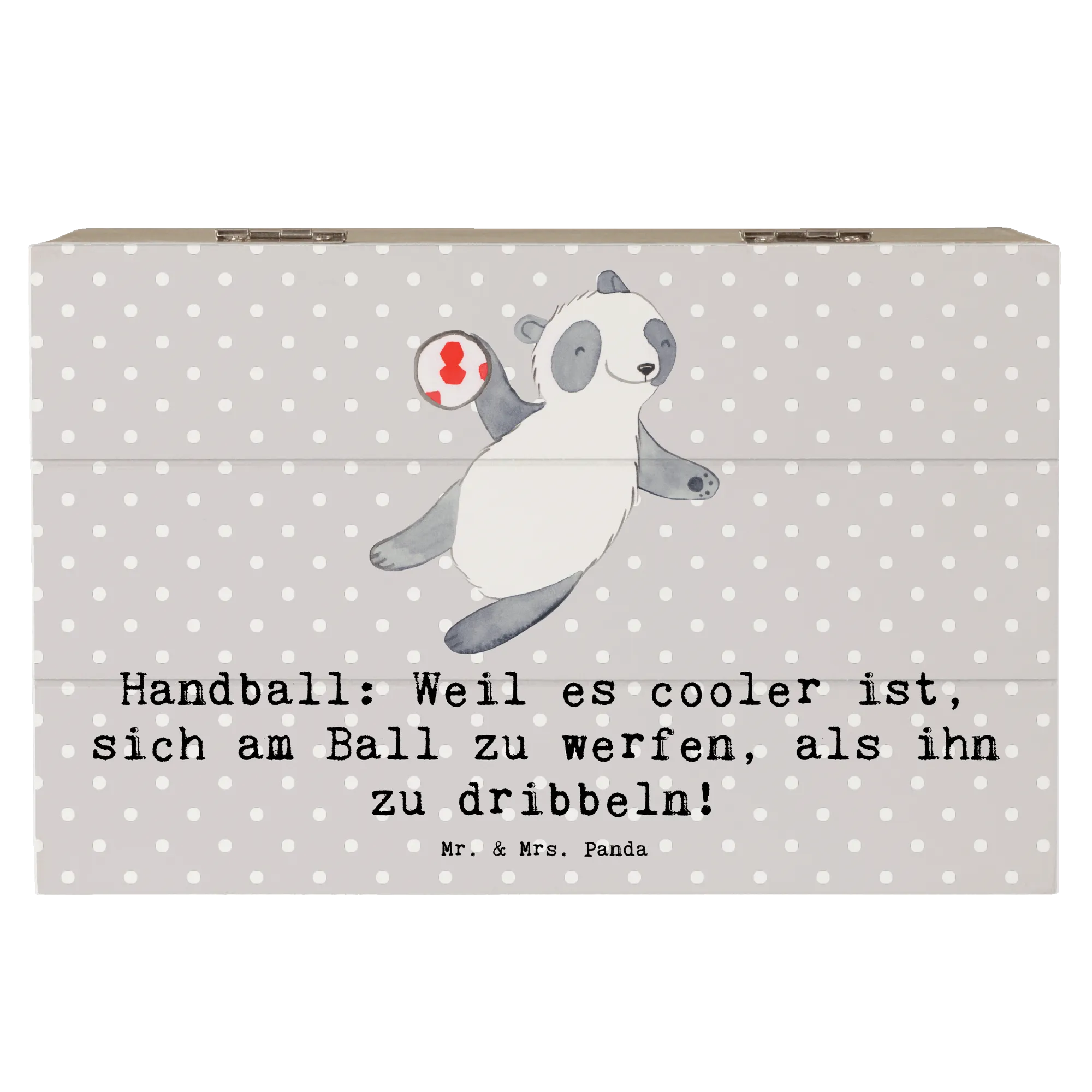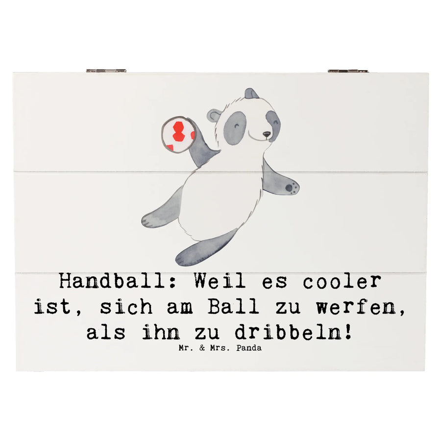 Entdecke die perfekte Holzkiste von Mr. & Mrs. Panda, die nicht nur eine wunderschöne Aufbewahrungslösung ist, sondern auch ein ganz besonderes Geschenk für Handball-Fans! Mit dem liebevollen Slogan 'Handball: Weil es cooler ist, sich am Ball zu werfen, als ihn zu dribbeln!' wird diese Erinnerungskiste zum Hit bei jedem Handballspieler und seiner Familie.