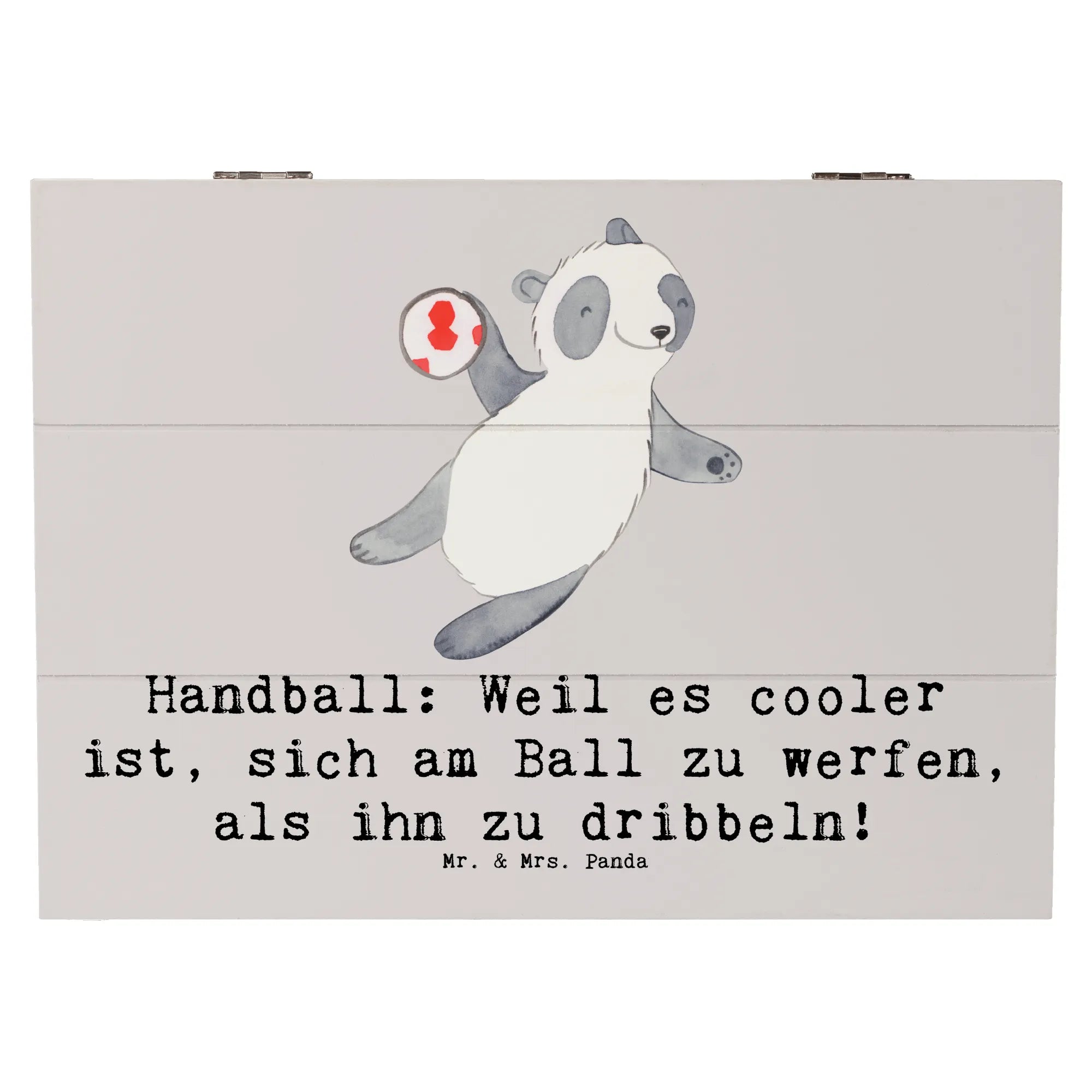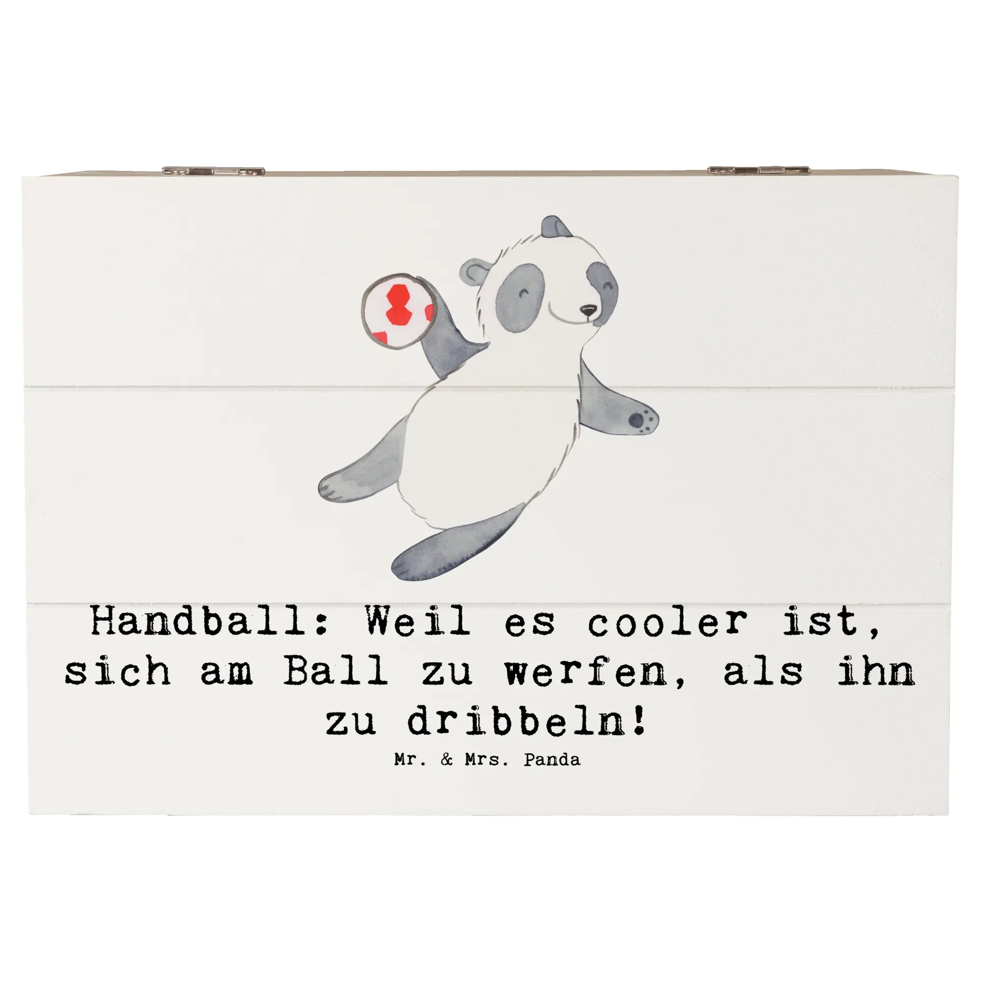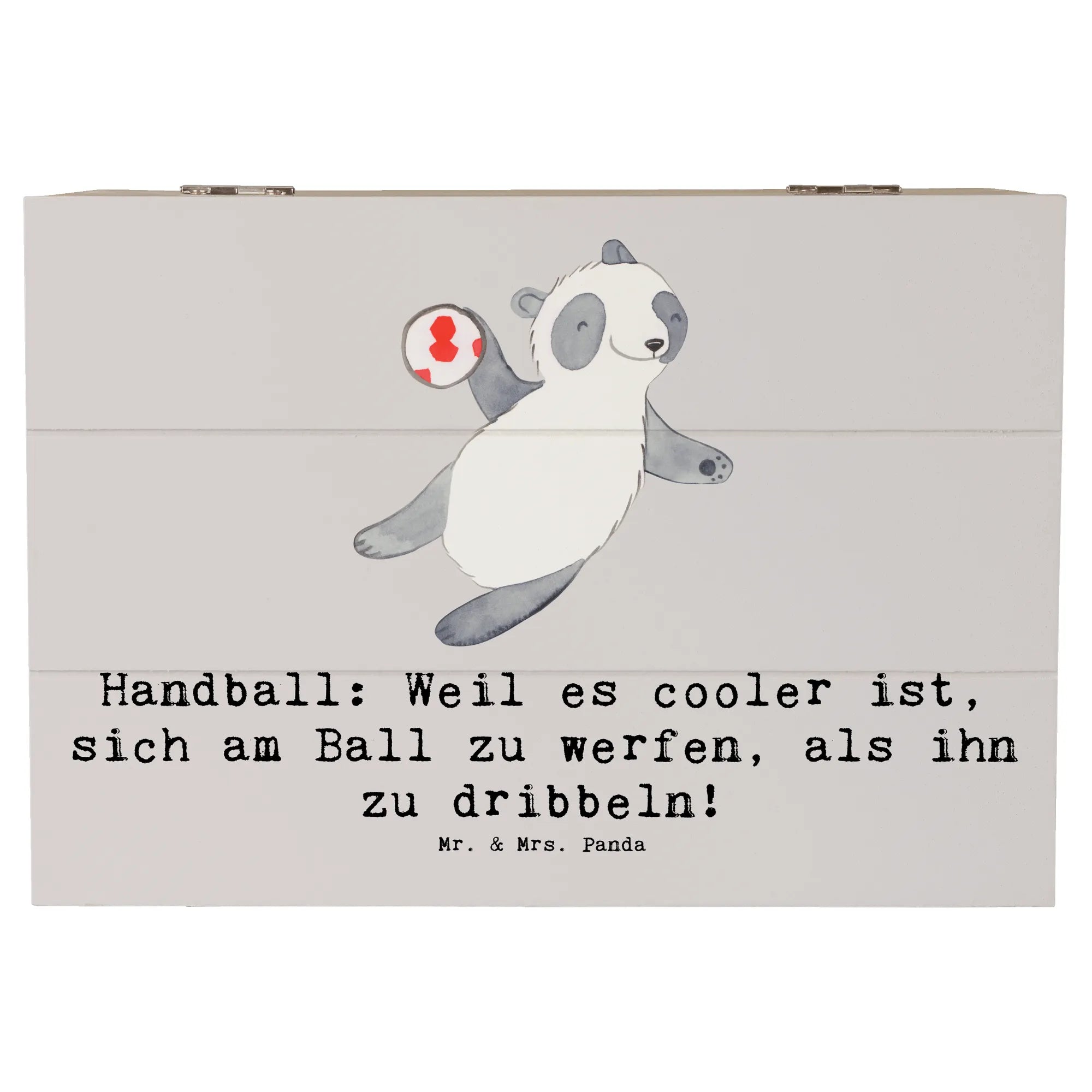 Entdecke die perfekte Holzkiste von Mr. & Mrs. Panda, die nicht nur eine wunderschöne Aufbewahrungslösung ist, sondern auch ein ganz besonderes Geschenk für Handball-Fans! Mit dem liebevollen Slogan 'Handball: Weil es cooler ist, sich am Ball zu werfen, als ihn zu dribbeln!' wird diese Erinnerungskiste zum Hit bei jedem Handballspieler und seiner Familie.