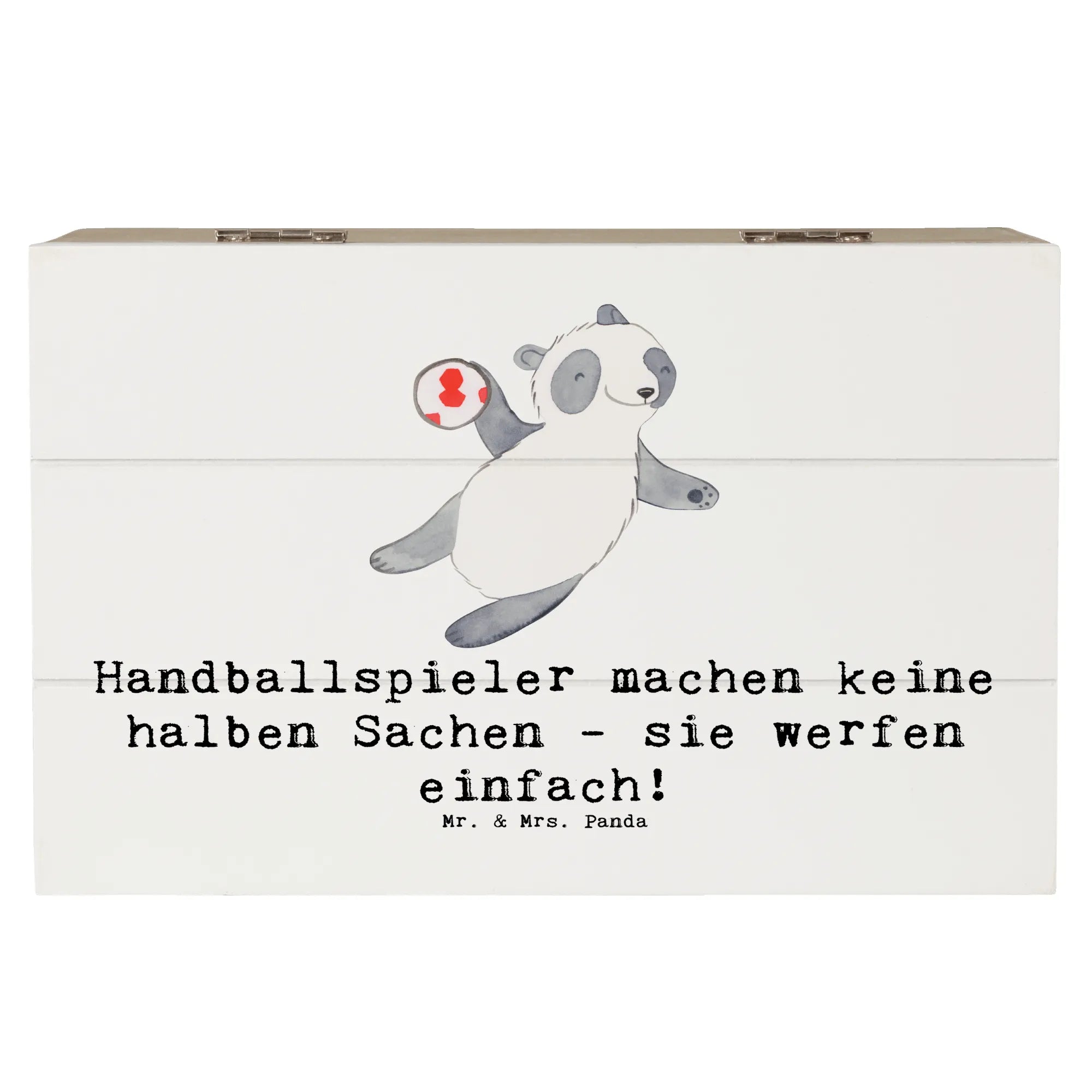 Entdecke die zauberhafte Holzkiste von Mr. & Mrs. Panda, die perfekt für alle Handball-Liebhaber geeignet ist! Diese wunderschöne Kiste ist nicht nur ein stilvolles Aufbewahrungsstück, sondern auch ein ganz besonderes Geschenk für zahlreiche Anlässe. Mit dem liebevollen Handball-Motiv und dem Spruch 'Handballspieler machen keine halben Sachen - sie werfen einfach!' wird sie garantiert zum Blickfang in jedem Raum. Die Größe von 180 mm x 250 mm x 150 mm bietet ausreichend Platz für all deine wertvollen Erinnerungen.