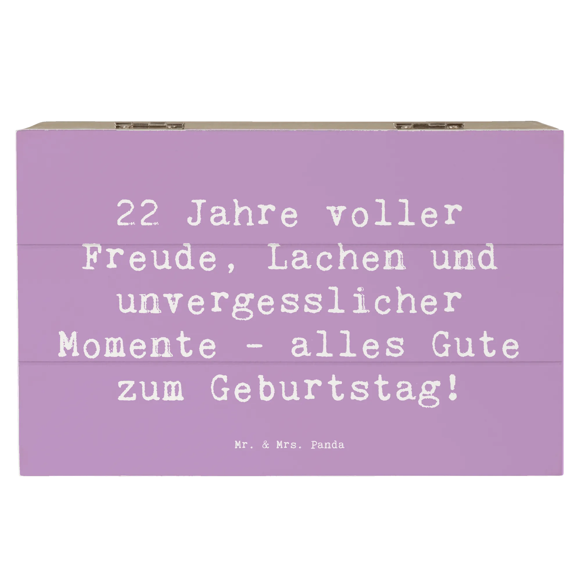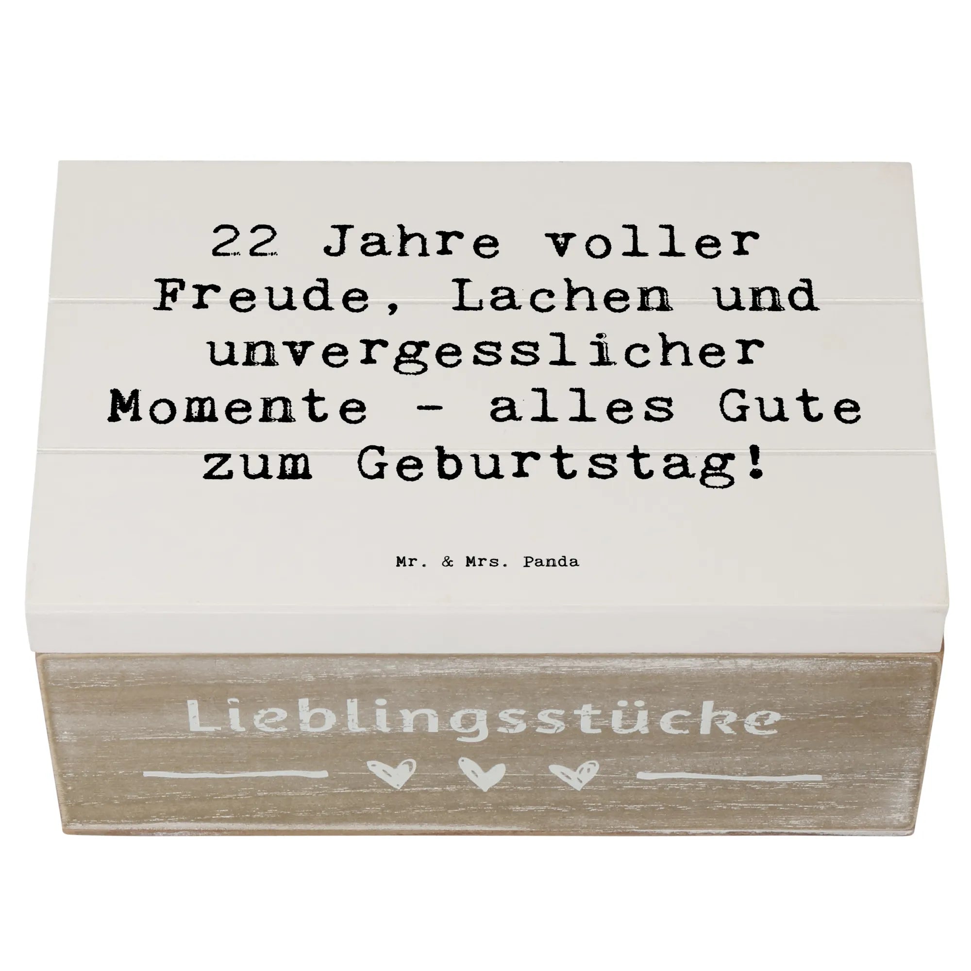 Die wunderschöne Holzkiste von Mr. & Mrs. Panda ist das perfekte Geschenk zum 22. Geburtstag! Mit ihrem liebevollen Design und dem Slogan "22 Jahre voller Freude, Lachen und unvergesslicher Momente - alles Gute zum Geburtstag!" ist sie mehr als nur eine Kiste – sie ist ein Ort voller Erinnerungen.