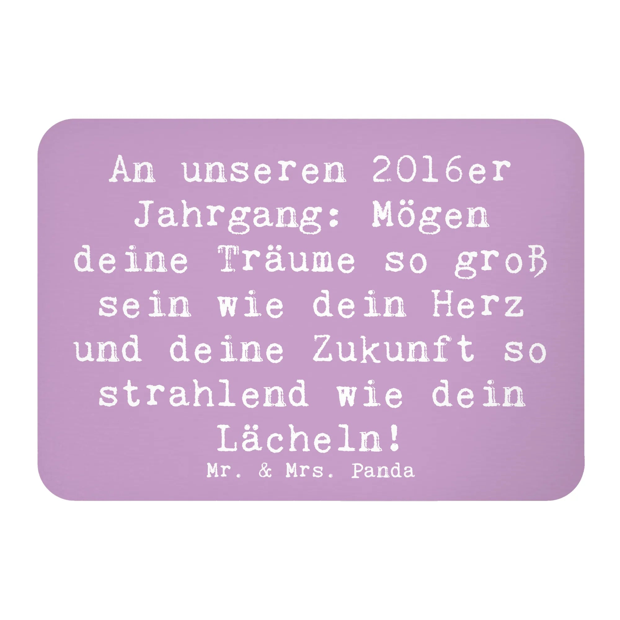 Entdecke den perfekten Kühlschrankmagneten von Mr. & Mrs. Panda, besonders designt für den Jahrgang 2016! Dieser farbenfrohe Magnet mit dem leuchtenden Spruch "An unseren 2016er Jahrgang: Mögen deine Träume so groß sein wie dein Herz und deine Zukunft so strahlend wie dein Lächeln!" ist nicht nur ein hübsches Deko-Element, sondern auch ein ganz besonderes Geschenk.