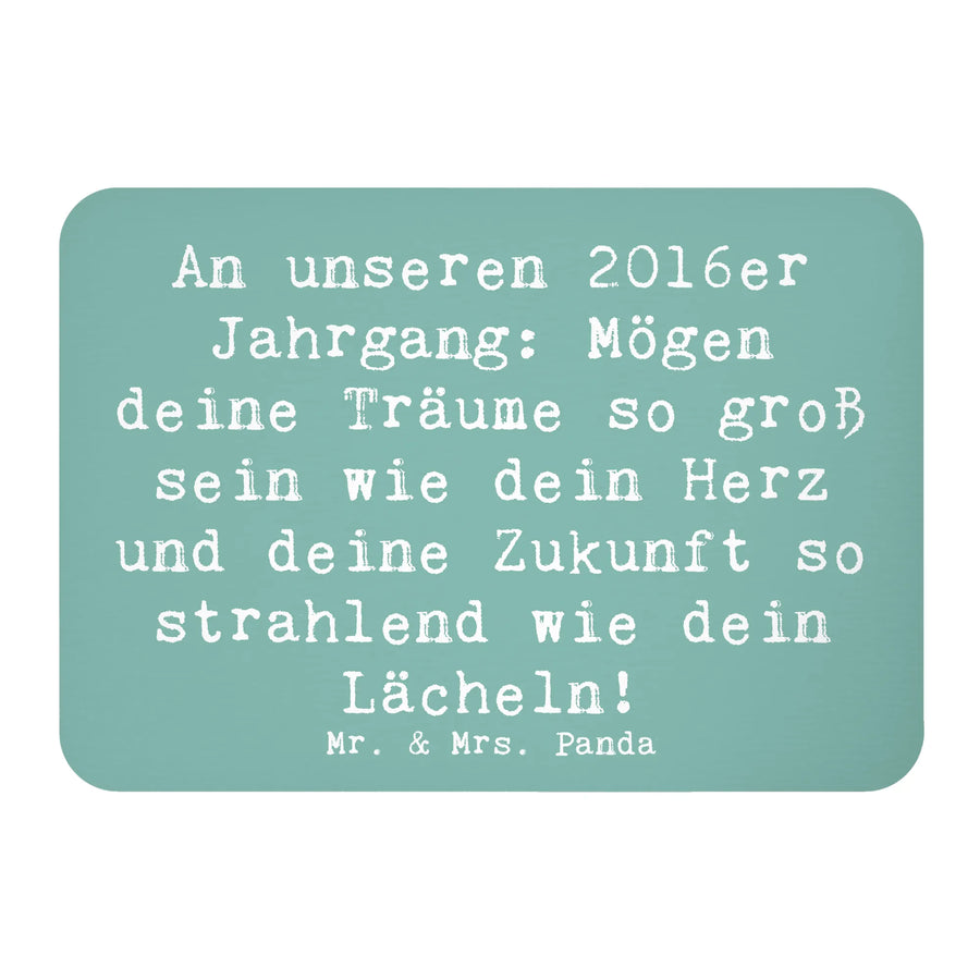 Suchst du das perfekte Geschenk für den 2016er Jahrgang? Dann ist unser Kühlschrankmagnet mit dem liebevollen Spruch "An unseren 2016er Jahrgang: Mögen deine Träume so groß sein wie dein Herz und deine Zukunft so strahlend wie dein Lächeln!" genau das Richtige!