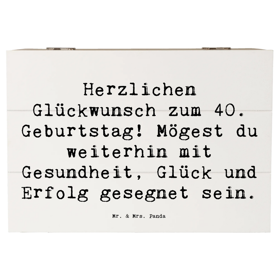 Suchst du das perfekte Geschenk zum 40. Geburtstag? Dann ist die wunderschöne Holzkiste von Mr. & Mrs. Panda genau das Richtige für dich! Diese süße Erinnerungskiste ist nicht nur eine Dekoration, sondern auch ein idealer Aufbewahrungsort für all deine Schätze. Egal, ob du sie für besondere Anlässe wie eine Kommunion oder Konfirmation verwendest, oder um nostalgische Fotos aus der Kindheit aufzubewahren - sie passt immer und überall!