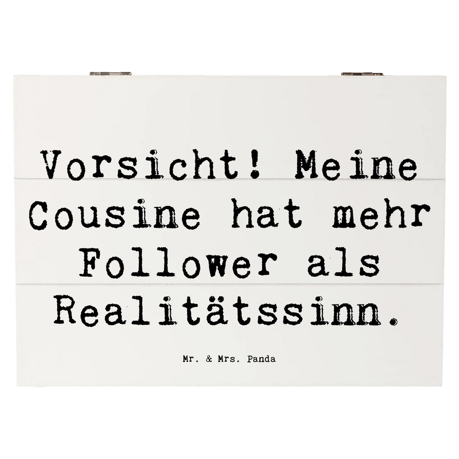 Eine wunderschöne Holzkiste von Mr. & Mrs. Panda – liebevoll gestaltet und mit einem frechen Spruch, der sofort sympathisch macht: Vorsicht! Meine Cousine hat mehr Follower als Realitätssinn. Diese Holzkiste ist das perfekte Geschenk für Cousins und Cousinen, die Humor, Familie und Erinnerungen schätzen.
