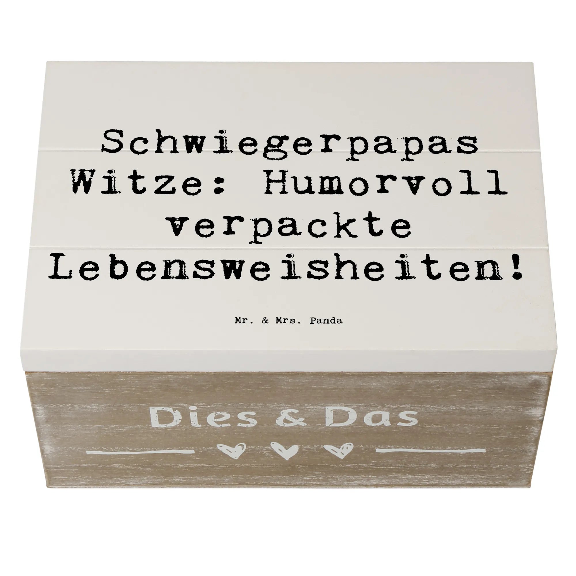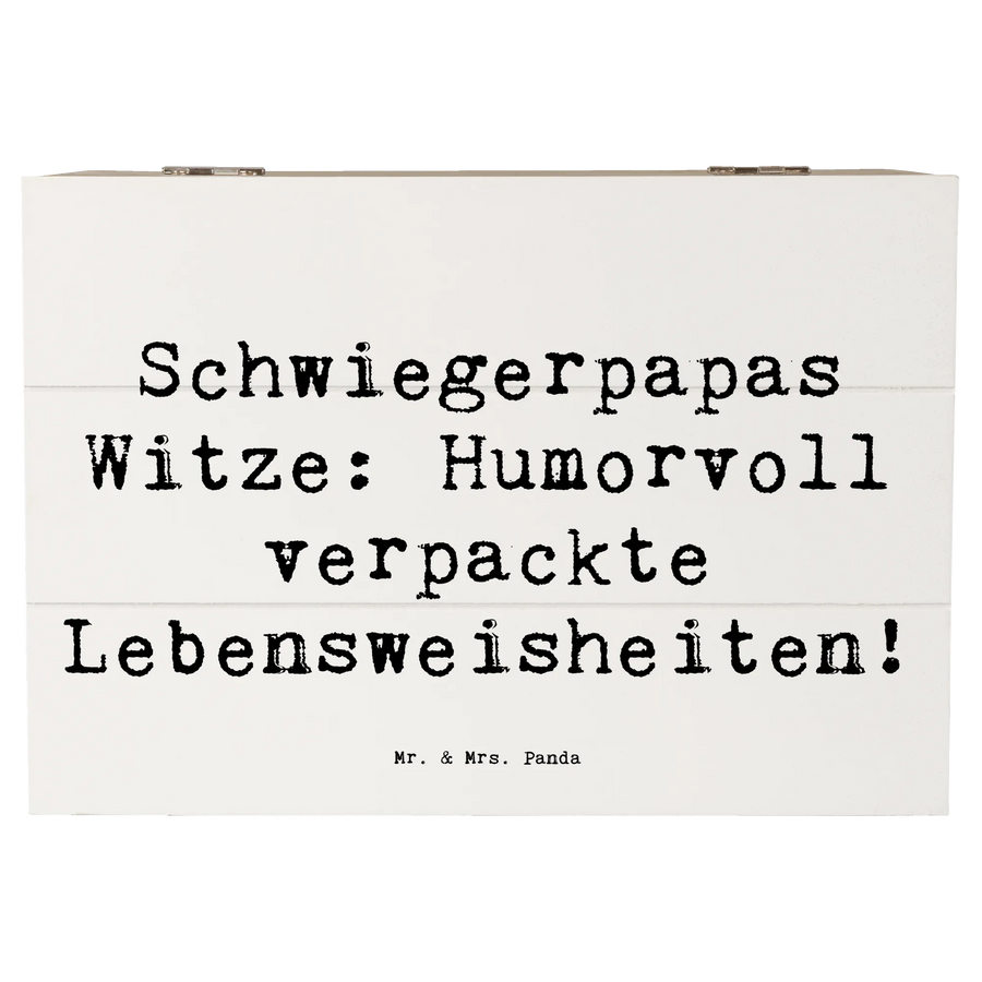 Du suchst nach einem besonderen Geschenk für Deinen Schwiegerpapa? Unsere wunderschöne Holzkiste von Mr. & Mrs. Panda ist die perfekte Wahl! Diese stabile XXL Erinnerungsbox aus hochwertiger Premium Hartfaser hat die idealen Maße von 190 mm x 120 mm x 100 mm. Sie eignet sich nicht nur als Aufbewahrungsort für Deine wertvollsten Schätze, sondern auch wunderbar als Dekokiste für Erinnerungen, Fotos oder Liebesbriefe.