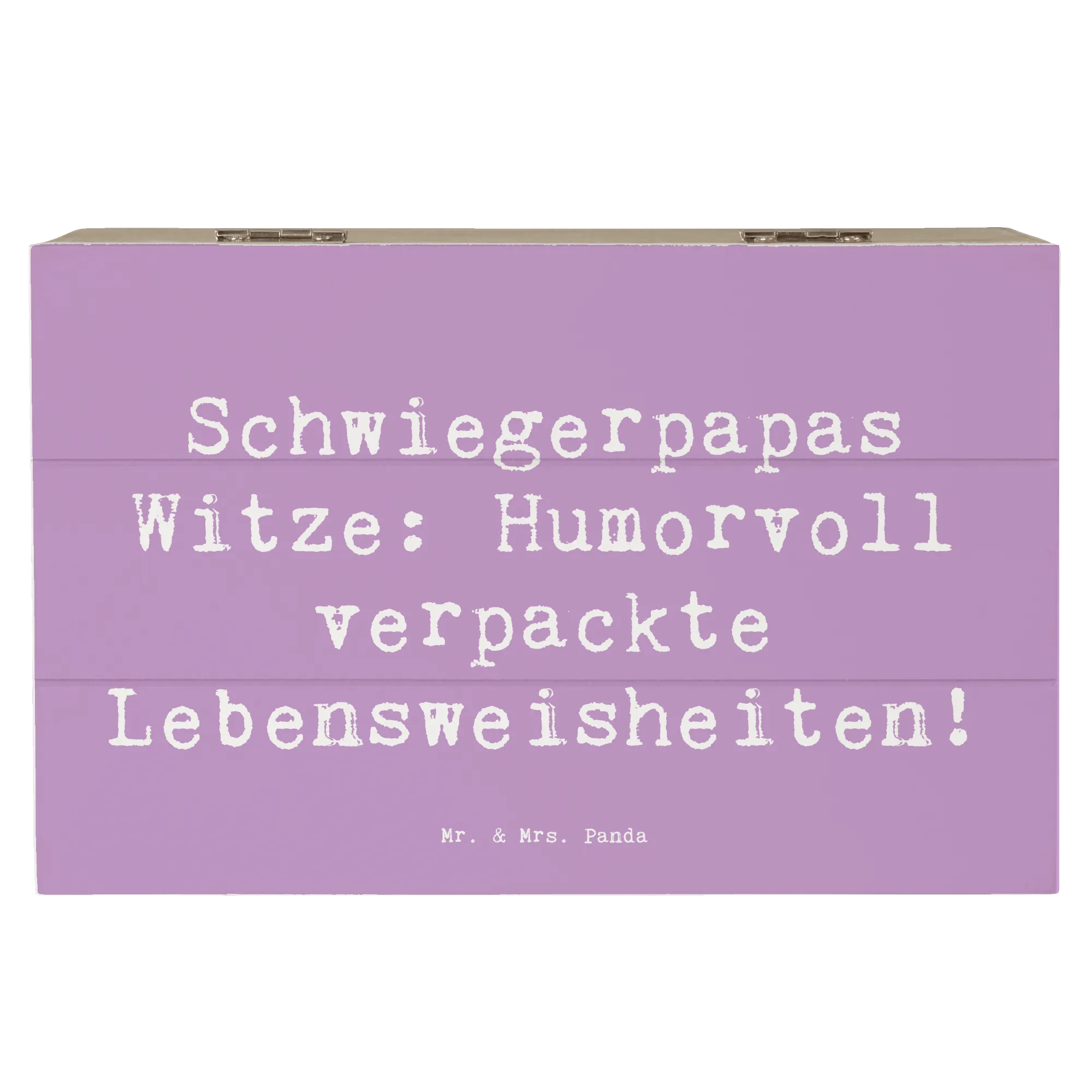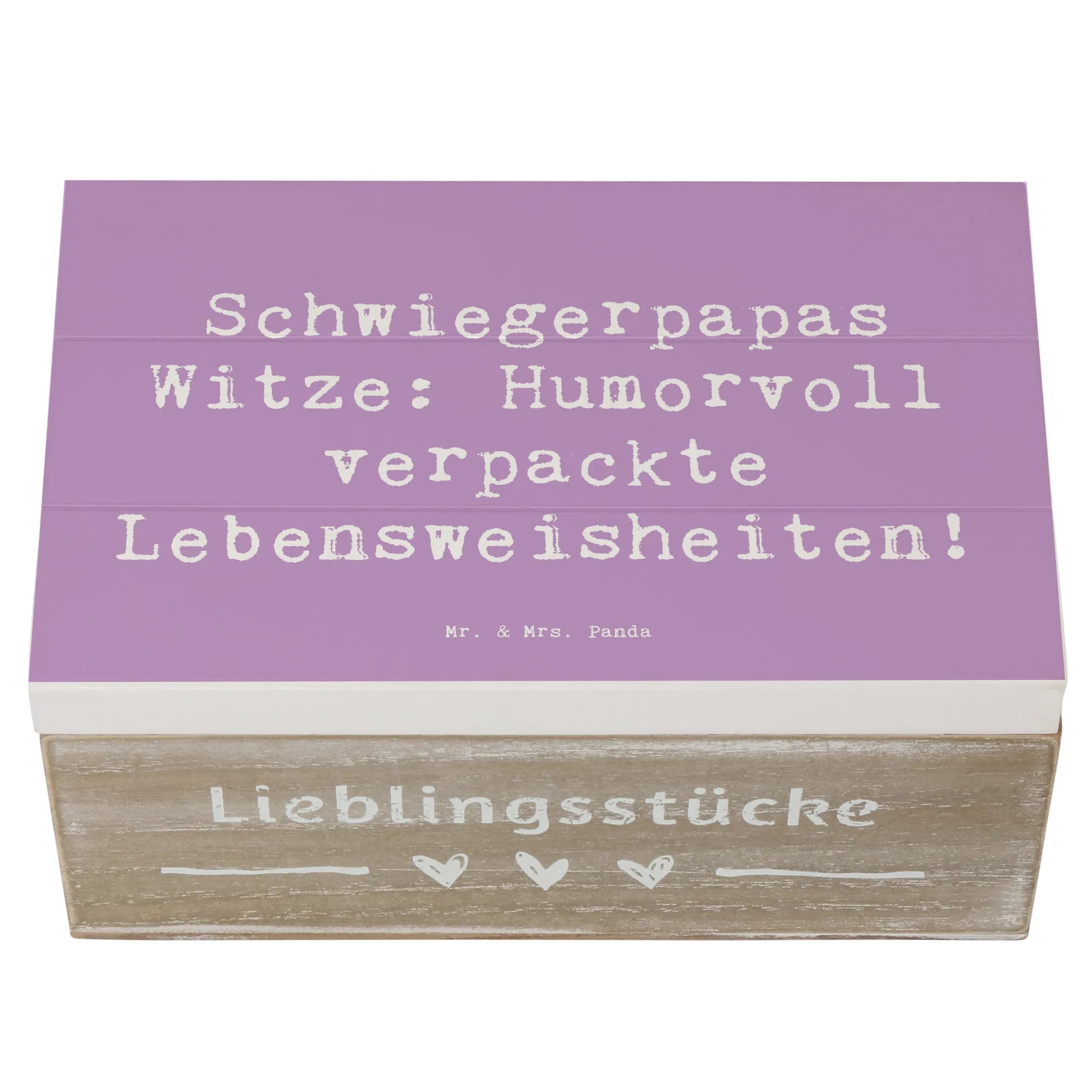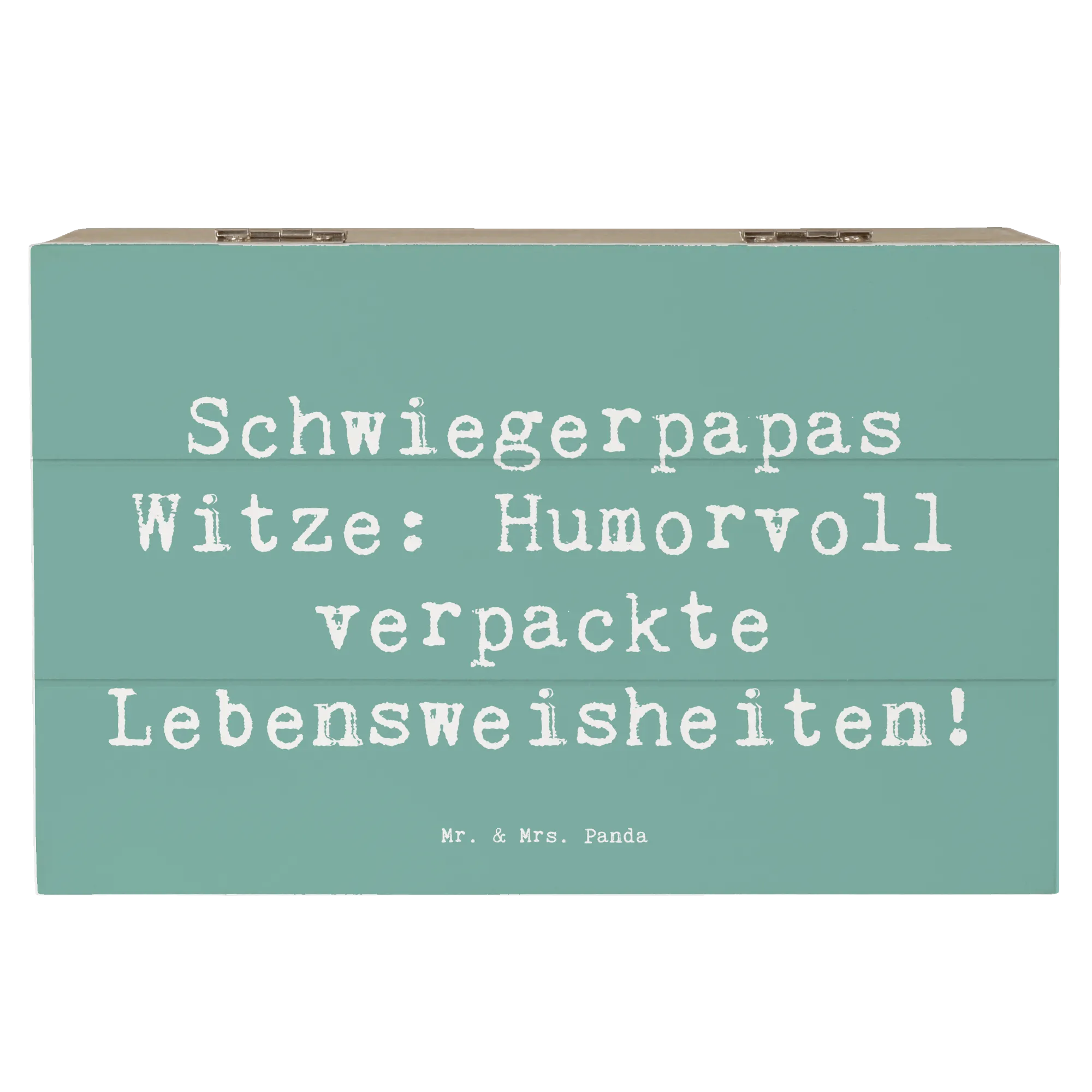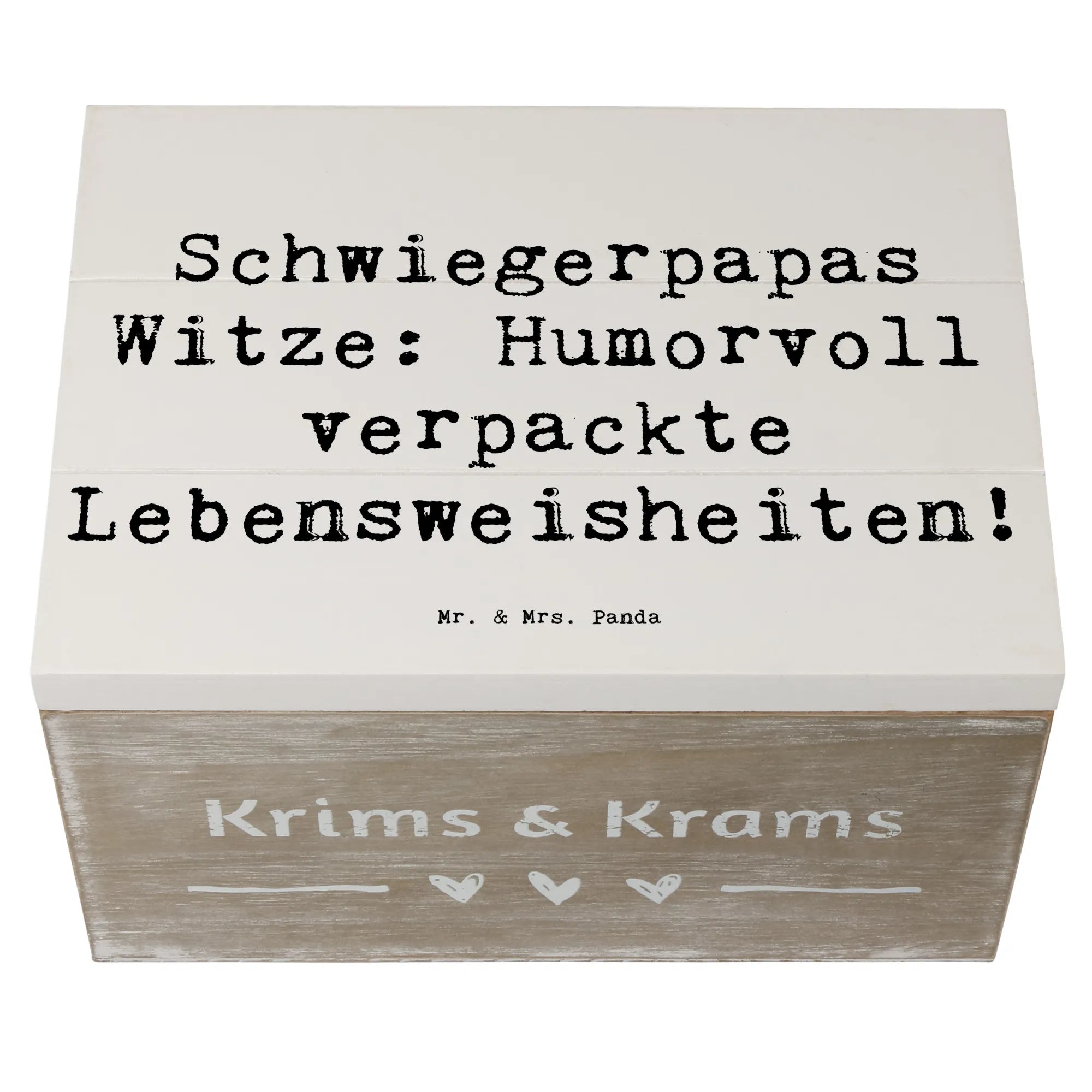 Die wunderschöne Holzkiste von Mr. & Mrs. Panda mit dem Motiv "Schwiegerpapa" ist das perfekte Geschenk für jeden Anlass! Egal, ob zum Vatertag, Geburtstag oder als kleines Dankeschön – diese Erinnerungskiste ist ein echtes Highlight in jedem Zuhause.