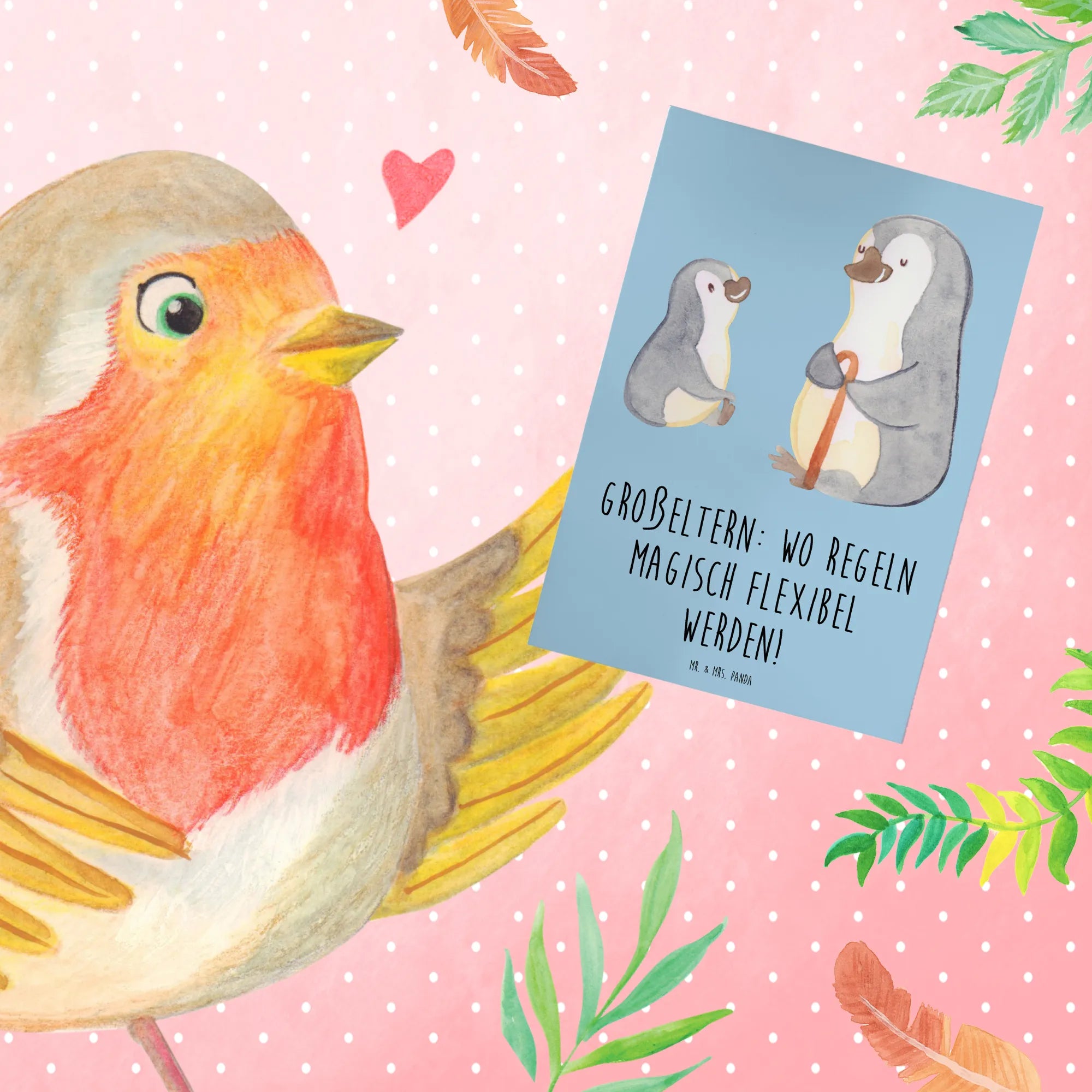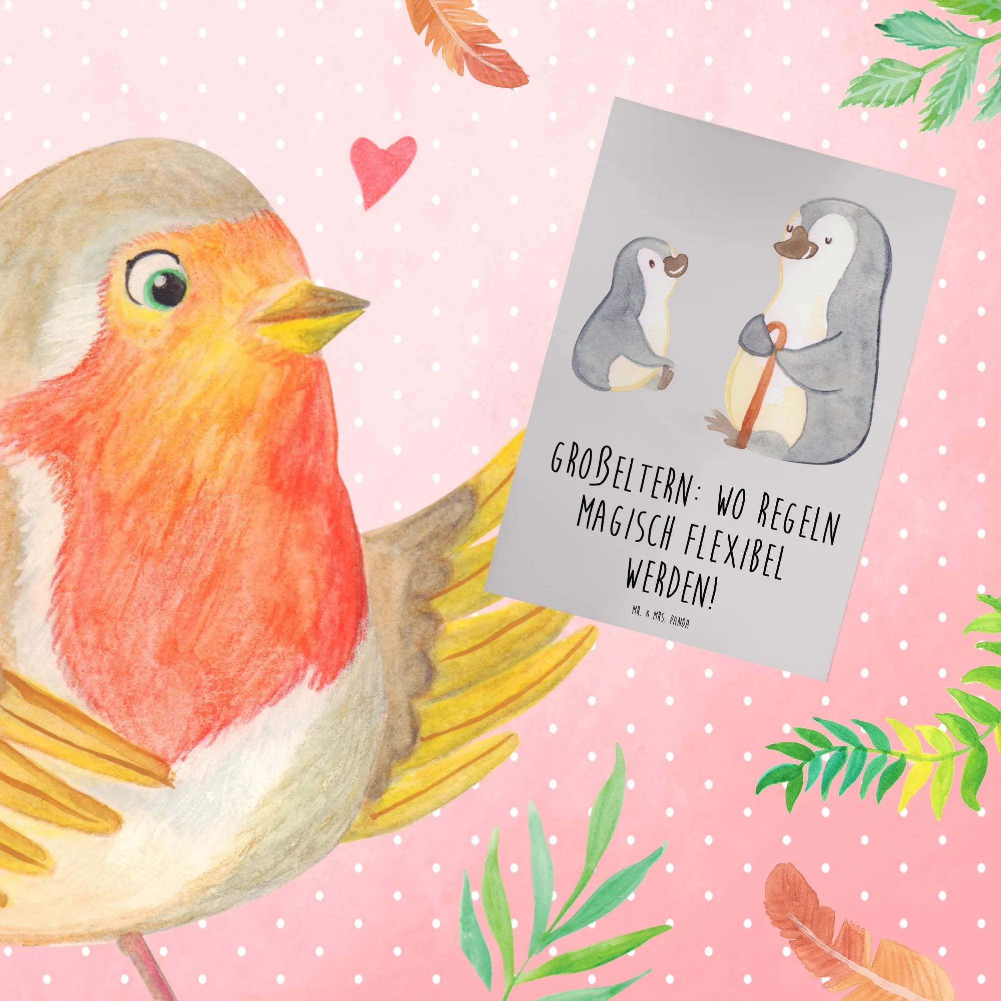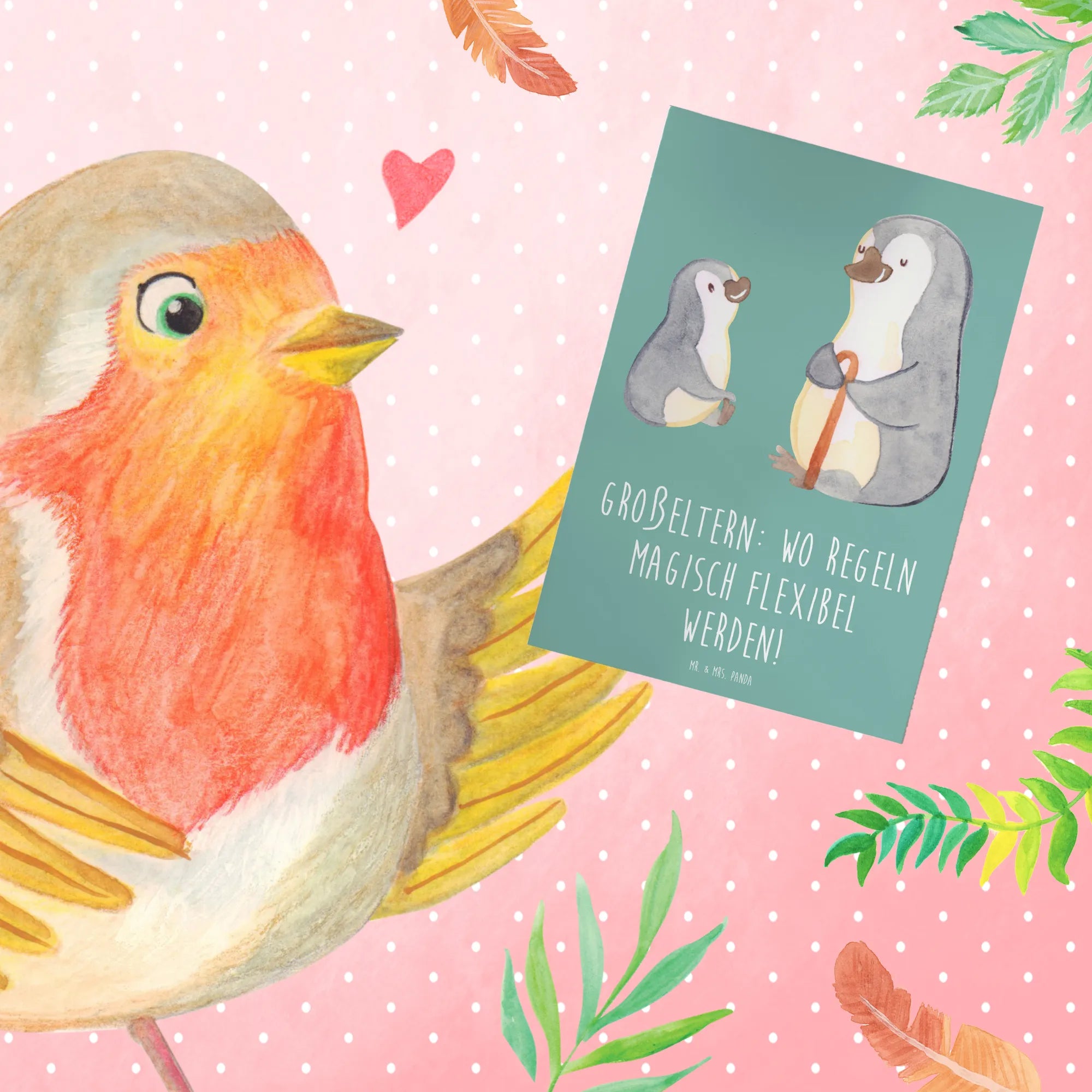 Die wunderschöne Grußkarte von Mr. & Mrs. Panda mit dem liebevollen Motiv "Großeltern: wo Regeln magisch flexibel werden!" ist das perfekte Geschenk für Großeltern und ermöglicht es dir, zusammen mit deinen Enkelkindern herzliche Grüße zu übermitteln.