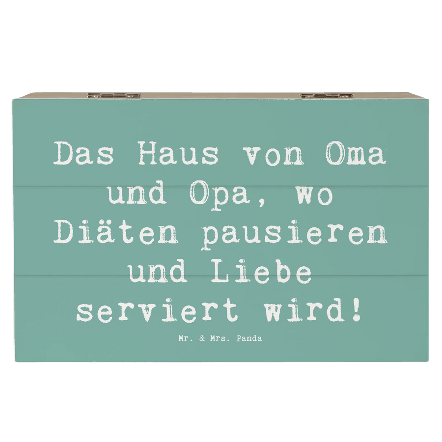 Diese wunderschöne Holzkiste von Mr. & Mrs. Panda ist das perfekte Geschenk für Großeltern und Familienmitglieder. Mit dem liebevollen Motiv, das den Spruch "Das Haus von Oma und Opa, wo Diäten pausieren und Liebe serviert wird!" trägt, wird jede Kiste zu einem besonderen Erinnerungsstück.