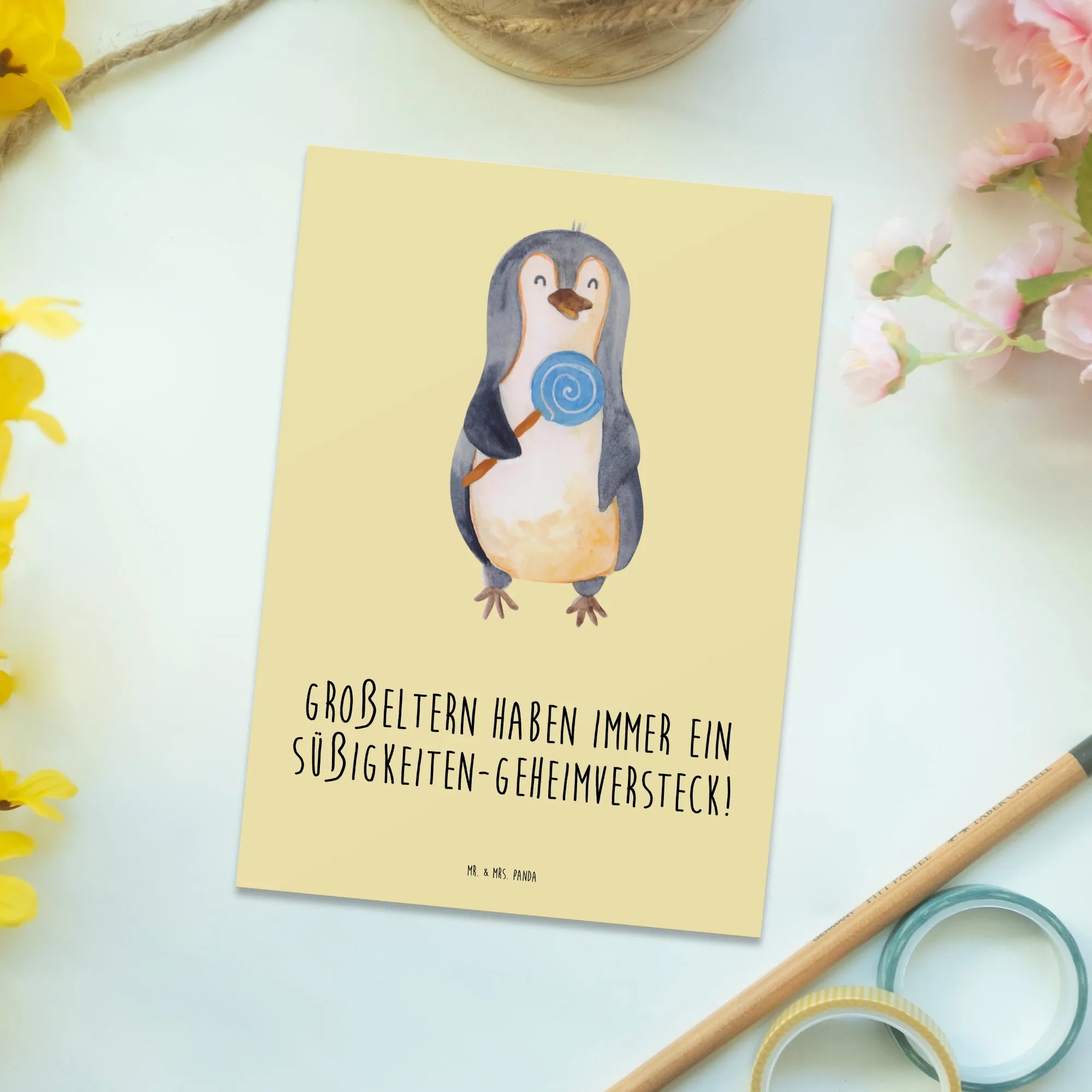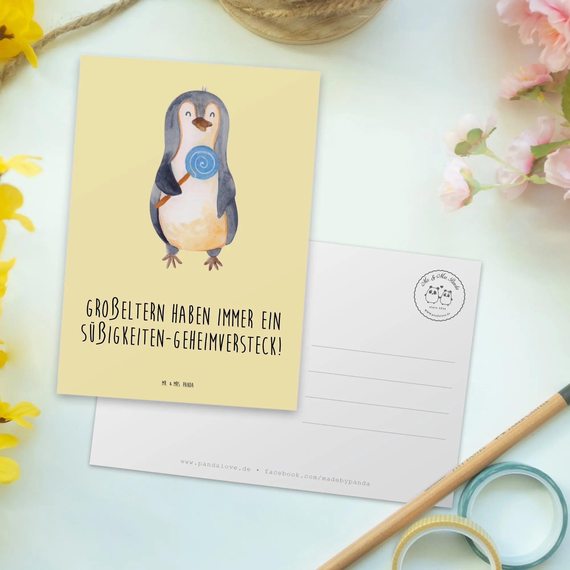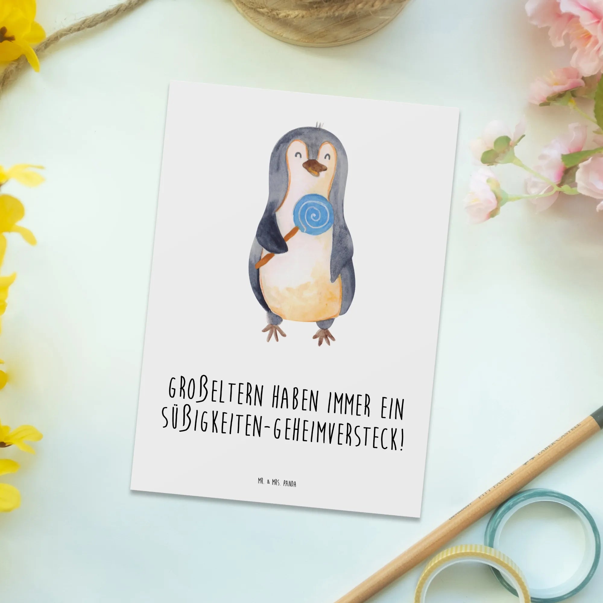 Diese einzigartige Postkarte von Mr. & Mrs. Panda ist perfekt, um deine Grüße in einem niedlichen Design zu übermitteln. Mit einem hochwertigen Karton von 150 mm und einer Dicke von 1 mm bekommst du eine Karte, die nicht nur witzige Sprüche trägt, sondern auch langlebig und robust ist. Die hochglänzend veredelte Vorderseite sorgt dafür, dass dein Gruß besonders schön aussieht, während die matte Rückseite für einfaches Beschriften sorgt. Sie ist ideal für besondere Anlässe wie Geburtstage, Hochzeiten und Taufen. Lass deiner Kreativität freien Lauf und gestalte die Rückseite ganz nach deinen Wünschen! Die lang anhaltende Druckfarbe sorgt dafür, dass dein lieber Gruß auch nach langer Zeit noch strahlend schön bleibt.