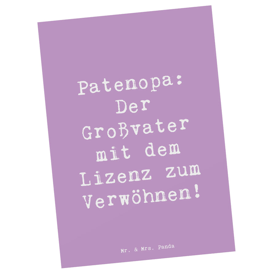 Die liebevoll gestaltete Karte misst 150 mm und besteht aus hochwertigem Karton mit einem mattierten Finish auf der Rückseite, das die individuelle Beschriftung erleichtert. Die Vorderseite ist hochglänzend veredelt, was sie besonders ansprechend macht. Egal, ob du die Karte als Einladung zu einem Geburtstag, als Dankeskarte für einen besonderen Gefallen oder einfach so verschenken möchtest – mit dieser Postkarte von Mr. & Mrs. Panda machst du immer eine gute Figur. Die Patenopa-Postkarte verbindet niedliche Motive mit einem spritzigen Spruch und eigens für dich designte Illustrationen, die direkt aus dem Herzen kommen.