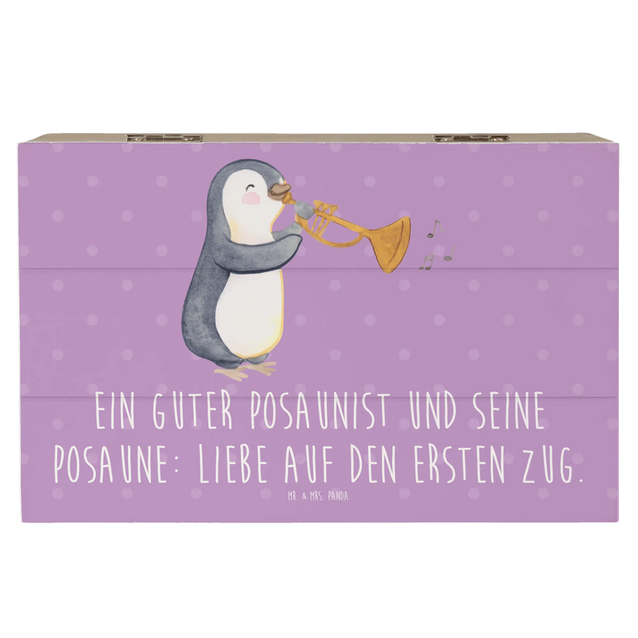 Die perfekte Holzkiste für Musikliebhaber! Diese wunderschöne Holzkiste von Mr. & Mrs. Panda ist nicht nur ein stilvolles Aufbewahrungsgeschirr, sondern auch das ideale Geschenk für jeden Posaunisten und Musikbegeisterten. Mit einem liebevoll gestalteten Motiv einer Posaune und dem zauberhaften Slogan 'Ein guter Posaunist und seine Posaune: Liebe auf den ersten Zug.' ist sie ein echter Blickfang.