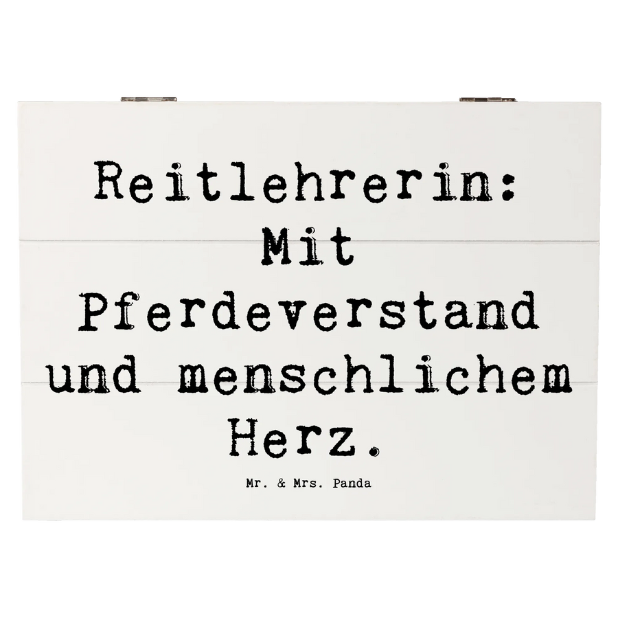 Die wunderschöne Holzkiste von Mr. & Mrs. Panda mit dem Motiv 'Reitlehrerin: Mit Pferdeverstand und menschlichem Herz' ist das ideale Geschenk für alle Pferdeliebhaber und Reitlehrerinnen. Diese bezaubernde Kiste eignet sich nicht nur als Aufbewahrungsort für Deine schönsten Erinnerungen, sondern auch als stilvolle Dekokiste für Dein Zuhause.