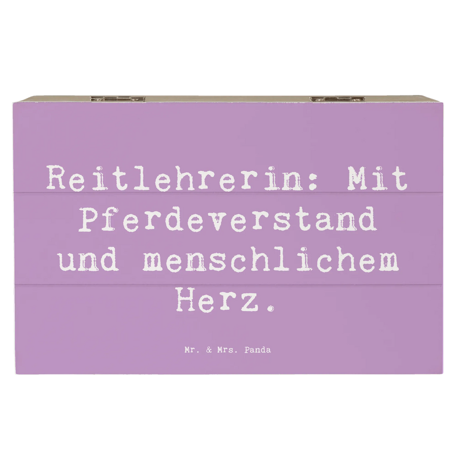 Die wunderschöne Holzkiste von Mr. & Mrs. Panda mit dem Motiv 'Reitlehrerin: Mit Pferdeverstand und menschlichem Herz' ist das ideale Geschenk für alle Pferdeliebhaber und Reitlehrerinnen. Diese bezaubernde Kiste eignet sich nicht nur als Aufbewahrungsort für Deine schönsten Erinnerungen, sondern auch als stilvolle Dekokiste für Dein Zuhause.