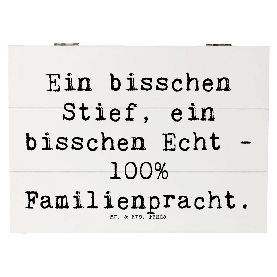Die wundervolle Holzkiste von Mr. & Mrs. Panda ist der perfekte Ort, um all die kostbaren Schätze Deiner Familie zu bewahren! Mit einem liebevollen Motiv von Stiefenkel und dem charmanten Slogan "Ein bisschen Stief, ein bisschen Echt - 100% Familienpracht", symbolisiert diese Kiste den liebevollen Zusammenhalt in modernen Familienstrukturen. Ob als Erinnerungskiste für festliche Anlässe wie Kommunion, Konfirmation oder einfach für all die schönen Fotos – diese Kiste bringt Ordnung und Freude in jedes Zuhause.