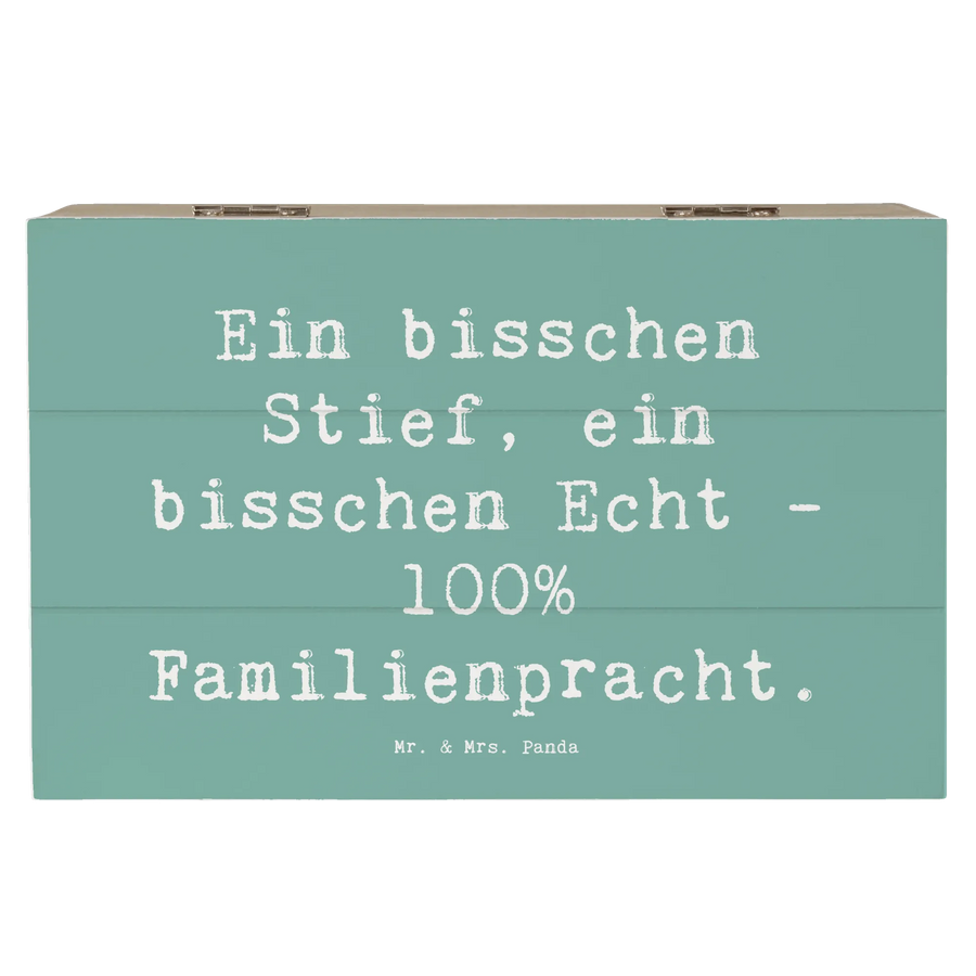 Die wundervolle Holzkiste von Mr. & Mrs. Panda ist der perfekte Ort, um all die kostbaren Schätze Deiner Familie zu bewahren! Mit einem liebevollen Motiv von Stiefenkel und dem charmanten Slogan "Ein bisschen Stief, ein bisschen Echt - 100% Familienpracht", symbolisiert diese Kiste den liebevollen Zusammenhalt in modernen Familienstrukturen. Ob als Erinnerungskiste für festliche Anlässe wie Kommunion, Konfirmation oder einfach für all die schönen Fotos – diese Kiste bringt Ordnung und Freude in jedes Zuhause.