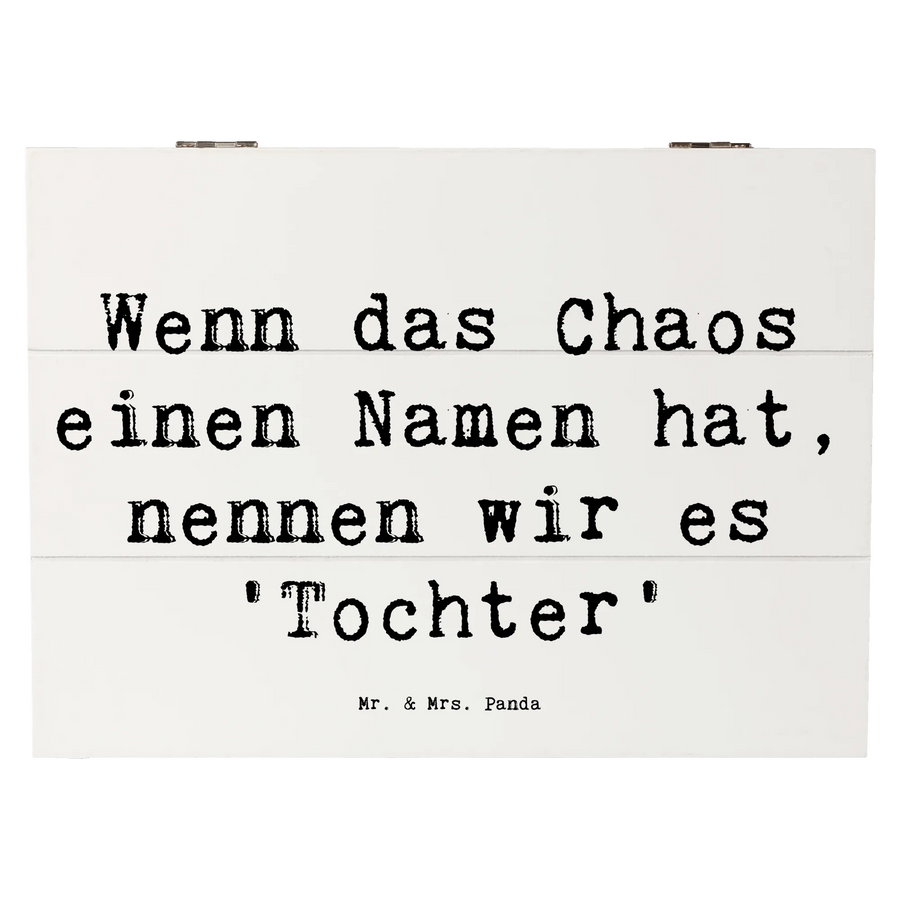 Entdecke die wundervolle Holzkiste von Mr. & Mrs. Panda, die perfekt für Deine bezaubernde Tochter ist! Diese liebevoll gestaltete Kiste ist nicht nur ein Aufbewahrungsort für all ihre Schätze, sondern auch ein wunderschönes Geschenk, das von Herzen kommt. Mit einem einzigartigen Motiv, das die besondere Beziehung zwischen Eltern und Töchtern zelebriert, trägt diese Kiste den Spruch: 'Wenn das Chaos einen Namen hat, nennen wir es 'Tochter'.' Diese Aussage spiegelt die Freude und das kleine Tohuwabohu wider, das Töchter in unser Leben bringen.