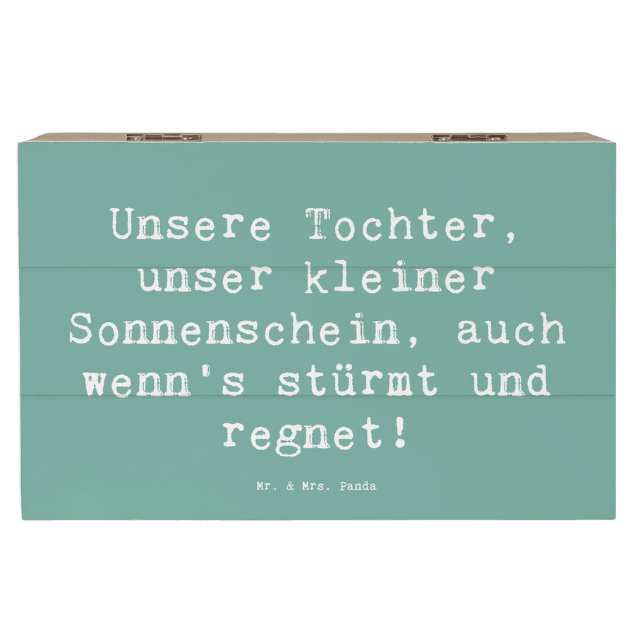 Suchst du nach dem perfekten Geschenk für deine geliebte Tochter? Die wunderschöne Holzkiste von Mr. & Mrs. Panda ist die ideale Wahl! Mit einem charmanten Motiv, das ausdrückt: 'Unsere Tochter, unser kleiner Sonnenschein, auch wenn's stürmt und regnet!', ist diese Kiste nicht nur ein Blickfang, sondern auch ein wertvoller Aufbewahrungsort für die besonderen Erinnerungen deiner kleinen Prinzessin. Egal ob für Geburtstage, Kommunion, Konfirmation oder einfach nur so - diese Erinnerungskiste wird Herzen höherschlagen lassen!