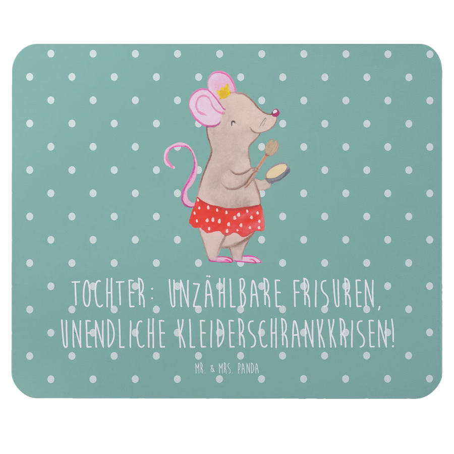Das wunderschöne Mauspad "Tochter" aus der einzigartigen Kollektion von Mr. & Mrs. Panda ist mehr als nur ein praktisches Computerzubehör – es ist ein ganz besonderes Geschenk für alle, die ihre Töchter lieben. Mit dem charmanten Spruch "Tochter: Unzählbare Frisuren, unendliche Kleiderschrankkrisen!" bringt dieses Mauspad ein Lächeln ins Gesicht der Beschenkten und lässt den Arbeitsalltag im Büro oder Homeoffice gleich viel fröhlicher erscheinen.