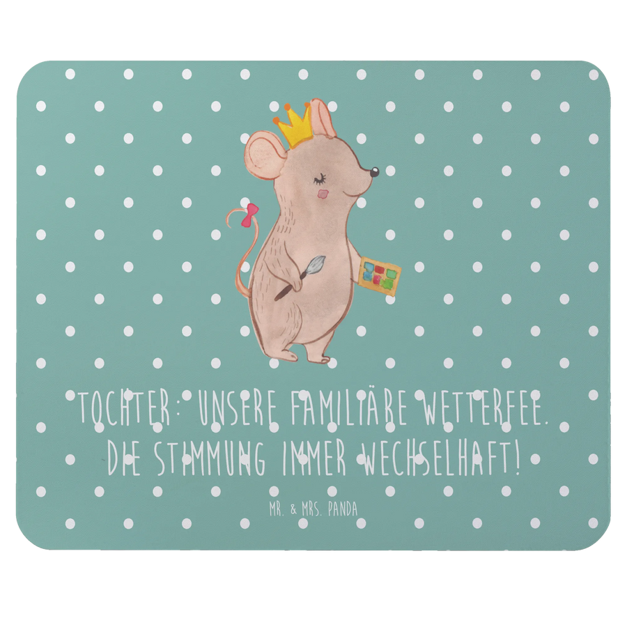 Das einzigartige Mauspad "Tochter" aus der Kollektion Familie & Verwandte von Mr. & Mrs. Panda ist das perfekte Geschenk für alle, die ihre Töchter feiern möchten. Töchter sind das Herzstück vieler Familien; sie bringen Freude, Einfallsreichtum und eine ganz besondere Energie in unser Leben. Dieses Mauspad ist nicht nur ein funktionales Büroaccessoire, sondern auch eine liebevolle Hommage an deine Tochter. Mit dem charmanten Motto „Unsere familiäre Wetterfee. Die Stimmung immer wechselhaft!“ bringt es ein Lächeln in jeden Arbeitsalltag und erinnert uns daran, wie wichtig und kostbar unsere Kinder sind.