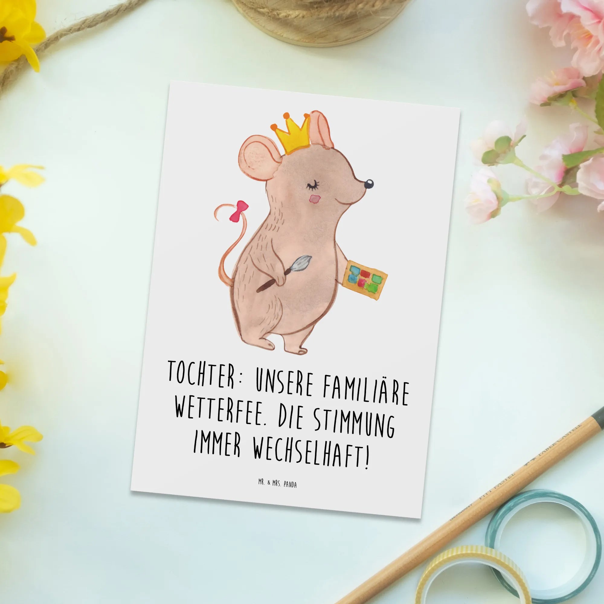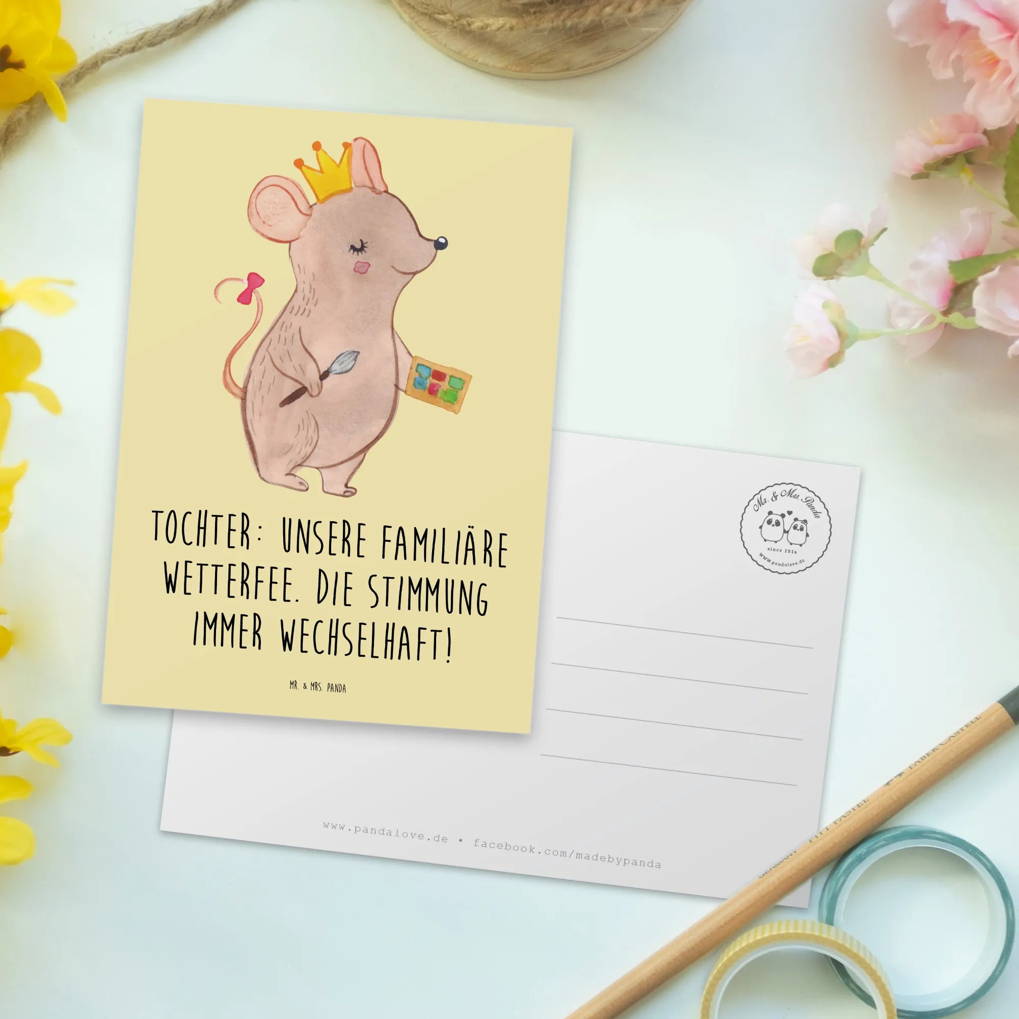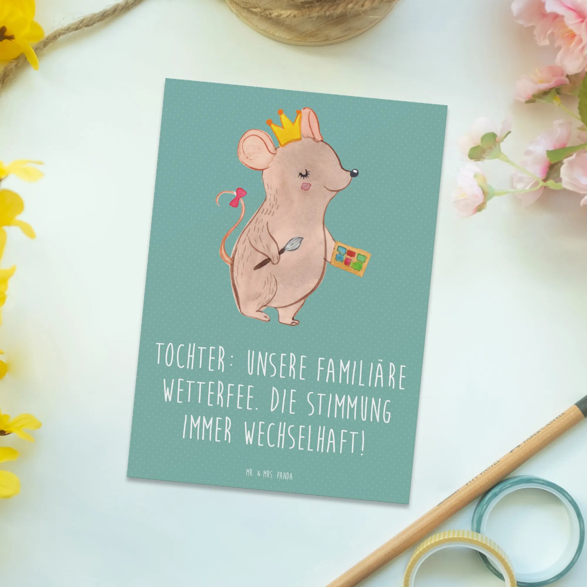Die Postkarte 'Tochter: Unsere familiäre Wetterfee. Die Stimmung immer wechselhaft!' aus der liebevollen Kollektion von Mr. & Mrs. Panda ist das perfekte Geschenk für alle, die das Besondere in ihrem Familienleben schätzen. Diese einzigartige Postkarte, die in einem charmanten Design daherkommt, ist nicht nur ein einfacher Gruß, sondern ein Ausdruck der Liebe und des Stolzes, den wir für unsere Töchter empfinden. Ideal für zahlreiche Anlässe, sei es zum Geburtstag, als Dankeskarte oder einfach als kleine Aufmunterung zwischendurch. Diese Karte ist genau das richtige, um deiner Tochter zu zeigen, wie sehr sie geschätzt wird und wie wichtig sie in deinem Leben ist. Die kreative Botschaft 'Unsere familiäre Wetterfee' zusammen mit den witzigen Illustrationen bringt garantiert ein Lächeln ins Gesicht deiner Tochter!