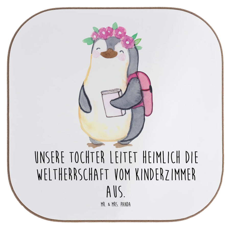 Dieser wunderschöne quadratische Untersetzer von Mr. & Mrs. Panda ist mehr als ein bloßer Tischschutz: Er ist ein kleines Statement für die Familie. Bedruckt mit dem frechen Spruch „Unsere Tochter leitet heimlich die Weltherrschaft vom Kinderzimmer aus.“ bringt er Humor und Herzlichkeit an jeden Tisch. Ob als Untersetzer Glas, Untersetzer Tasse oder Becheruntersetzer – dieses Design passt immer.