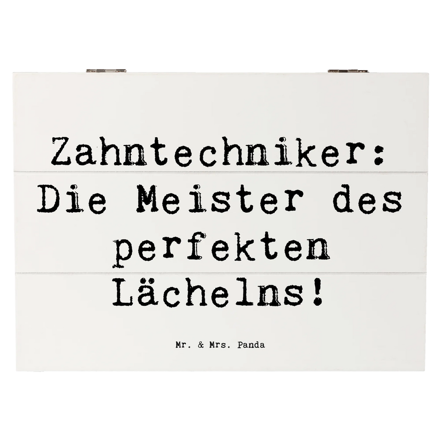Diese wunderschöne Holzkiste von Mr. & Mrs. Panda ist der perfekte Begleiter für alle Zahntechniker und deren Unterstützer! Die Kiste ist mit dem liebevollen Spruch 'Zahntechniker: Die Meister des perfekten Lächelns!' bedruckt und bringt somit nicht nur Freude, sondern auch eine persönliche Note in jeden Raum.