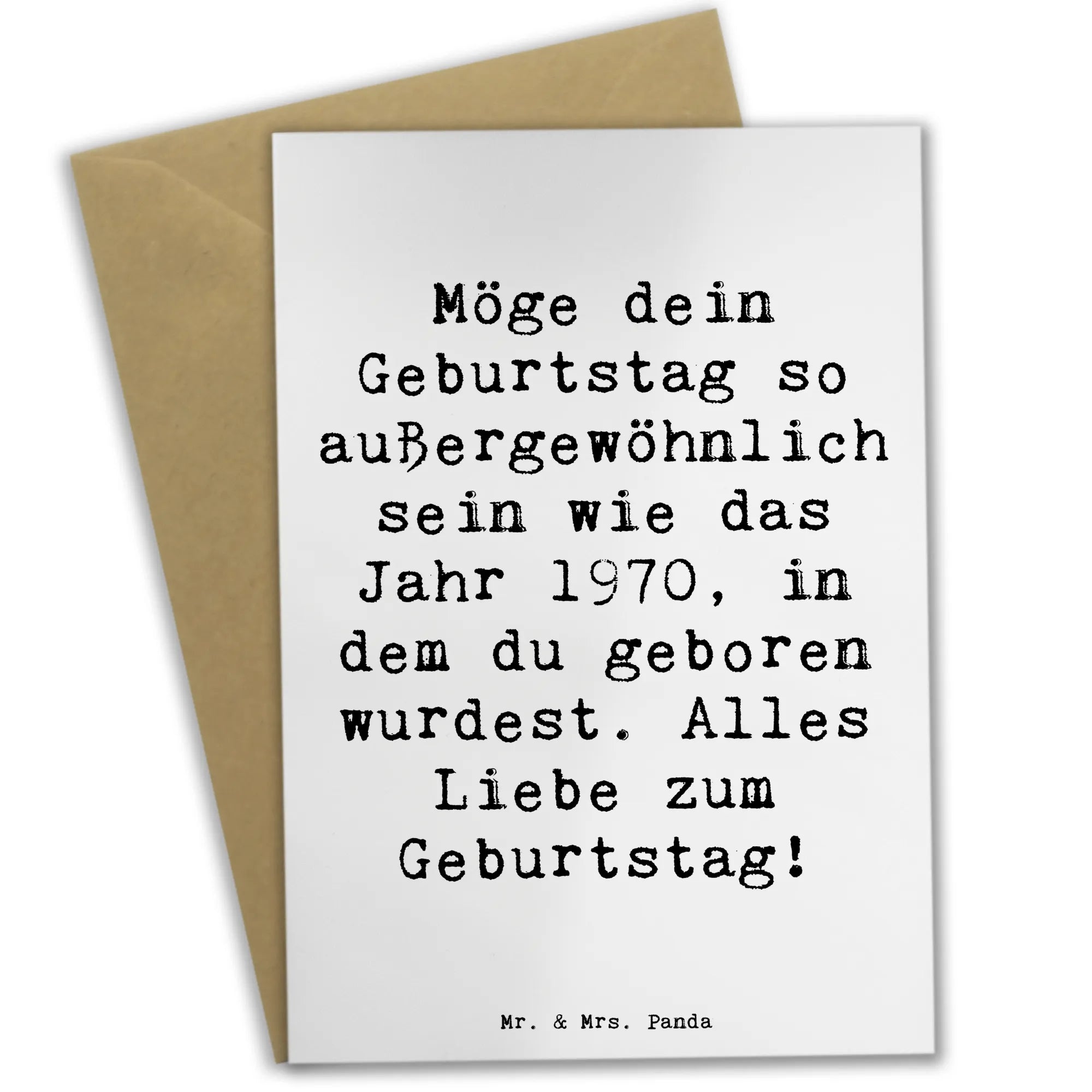 Du suchst das perfekte Geschenk für einen tollen Menschen, der im Jahr 1970 geboren wurde? Diese liebevoll gestaltete Grußkarte von Mr. & Mrs. Panda ist genau das Richtige! Mit dem Slogan "Möge dein Geburtstag so außergewöhnlich sein wie das Jahr 1970, in dem du geboren wurdest. Alles Liebe zum Geburtstag!" wird diese Karte nicht nur zum Strahlen bringen, sondern auch Herzen erwärmen.