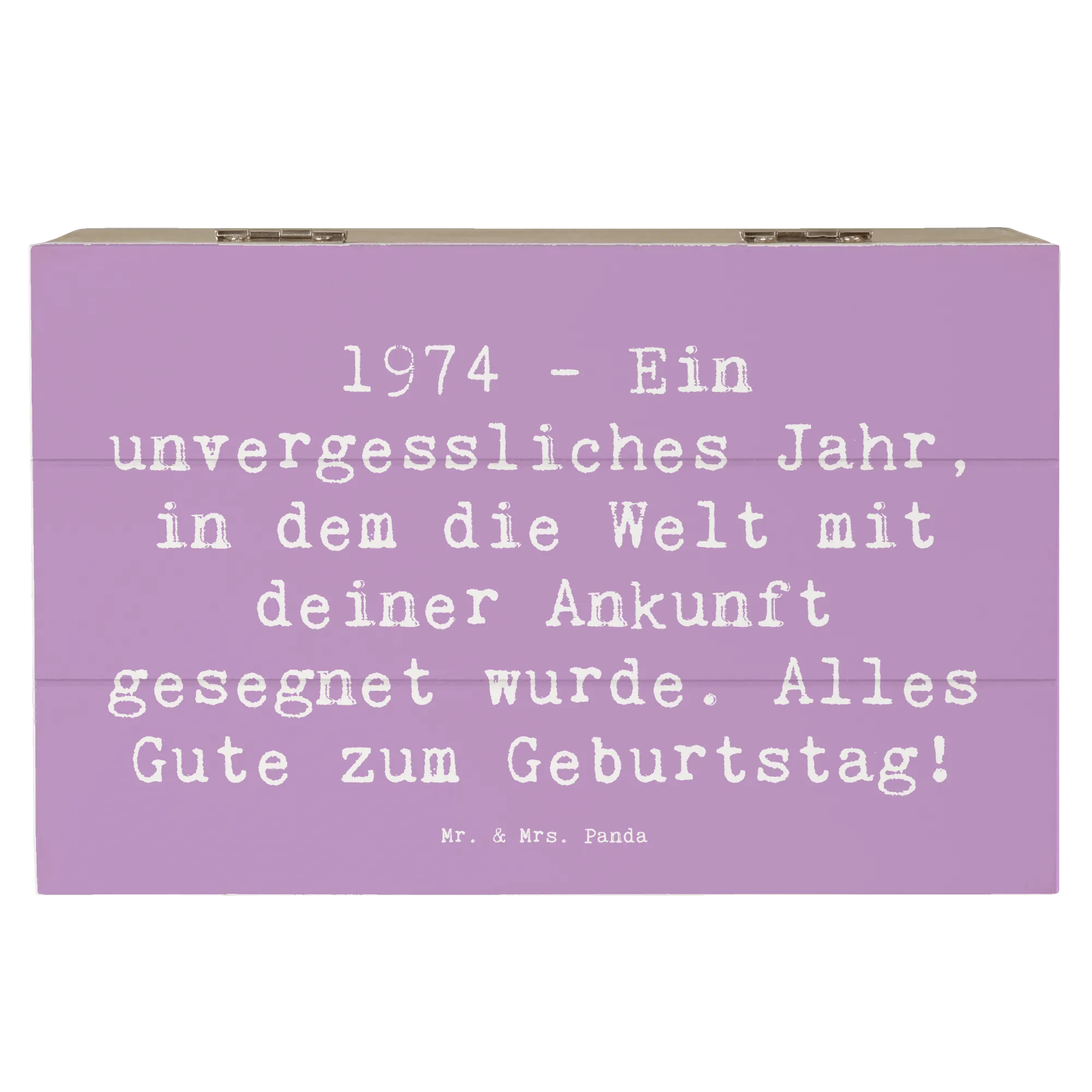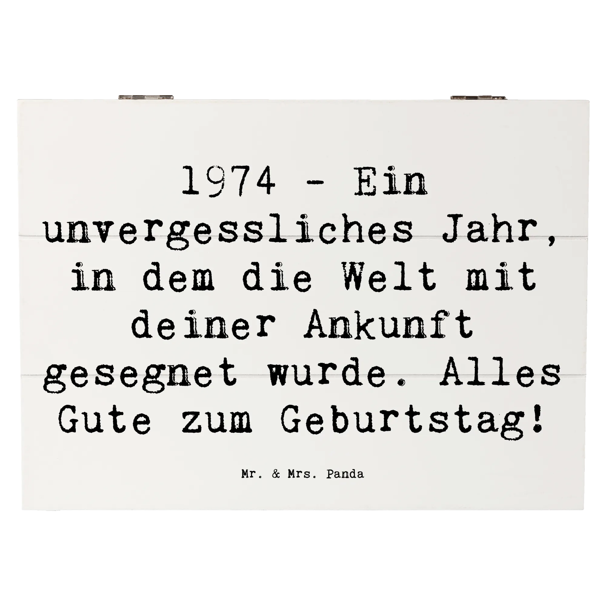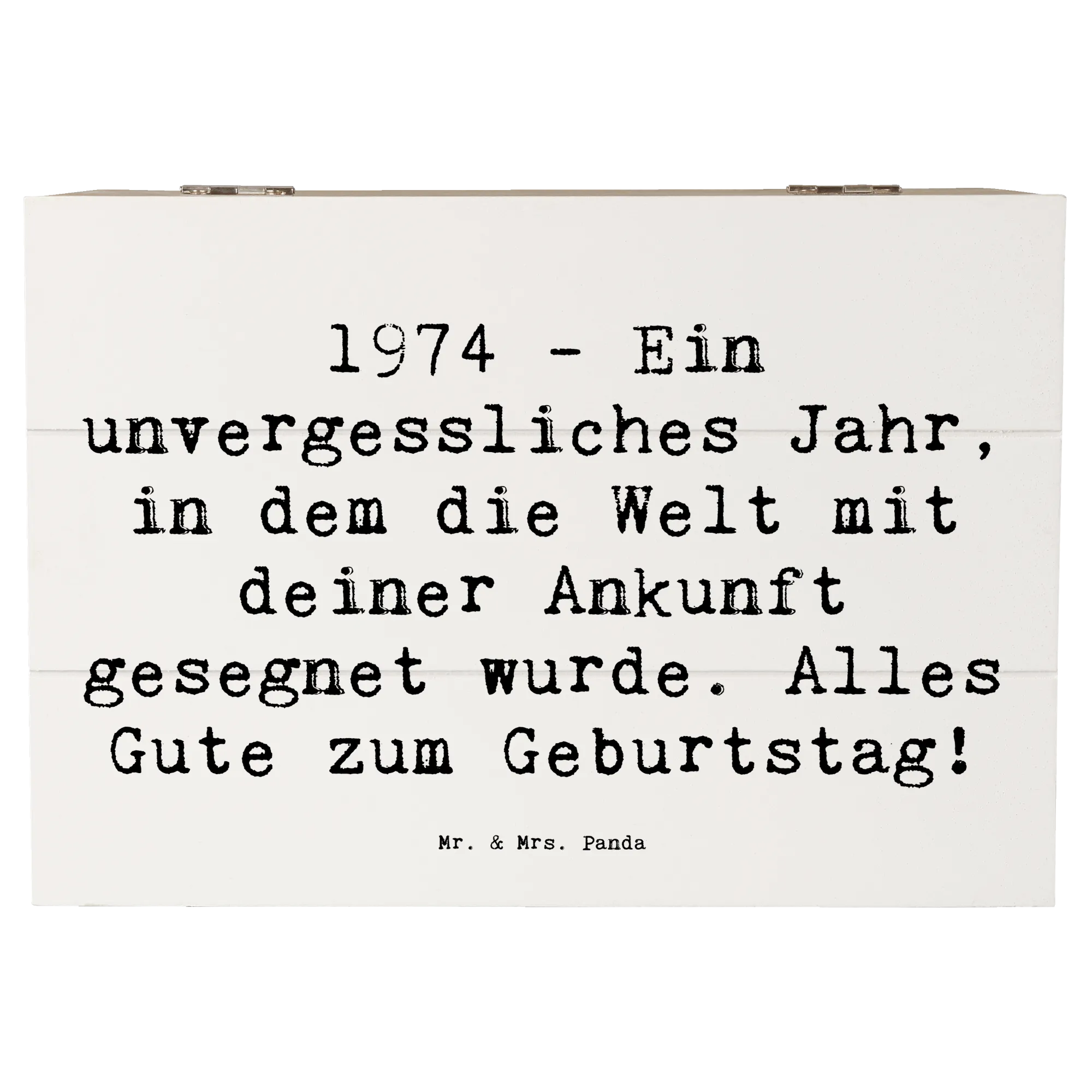 Entdecke die liebevolle Holzkiste "1974 Geburtstag" von Mr. & Mrs. Panda! Diese wunderschöne Kiste ist nicht nur ein Aufbewahrungsort für all deine wertvollen Schätze, sondern auch ein einzigartiges Geschenk, das mit viel Liebe zum Detail gestaltet wurde.