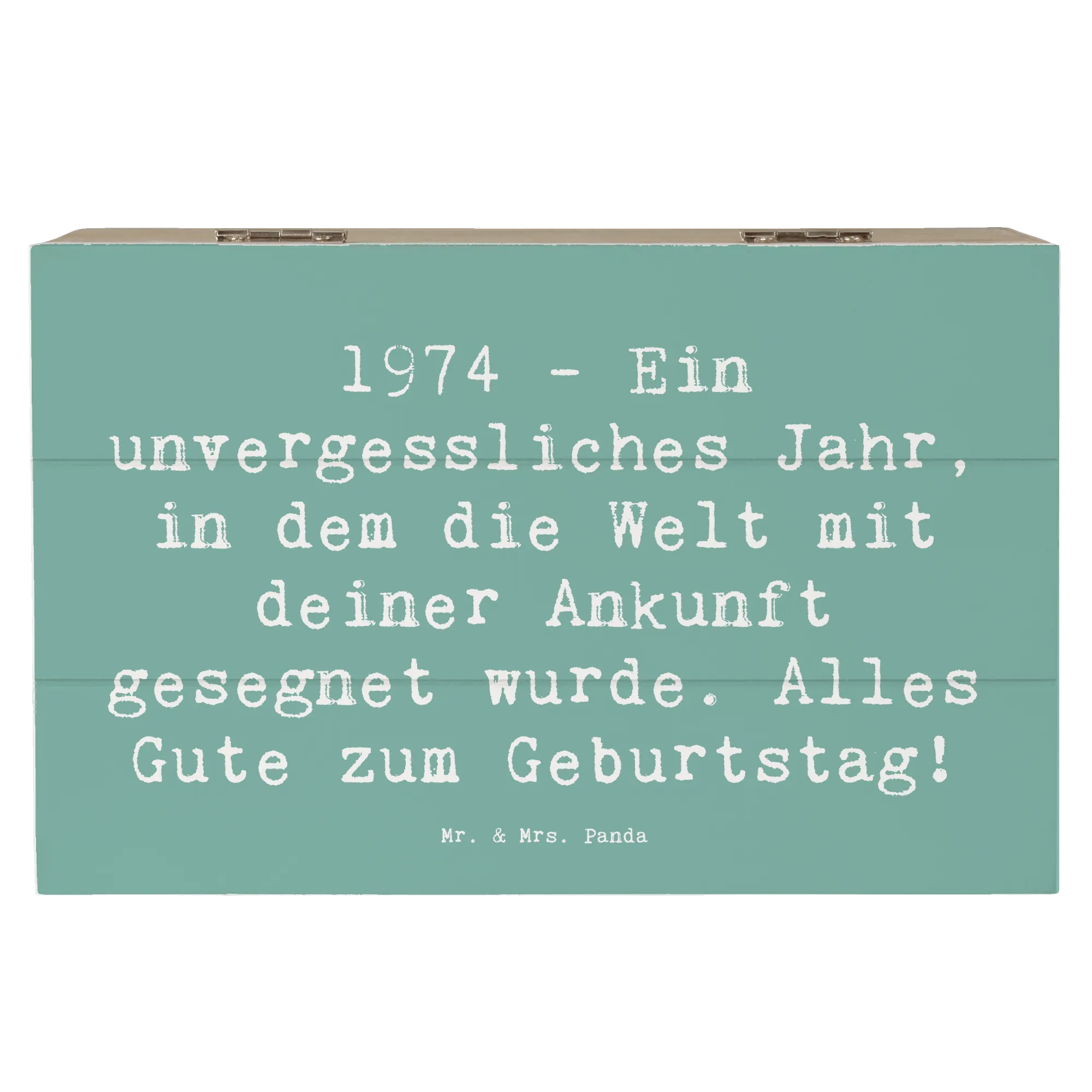 Die Holzkiste "1974 Geburtstag" von Mr. & Mrs. Panda ist das perfekte Geschenk für all jene, die in diesem besonderen Jahr das Licht der Welt erblickten. Diese liebevoll gestaltete Erinnerungskiste ist nicht nur ein einzigartiges Deko-Element, sondern auch ein wunderbarer Aufbewahrungsort für schätzbare Dinge, die das Leben in all seinen Facetten festhalten.